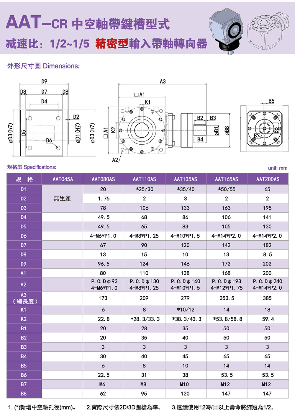 AAT-CR中空軸帶鍵槽型式 精密型輸入帶軸轉(zhuǎn)向器