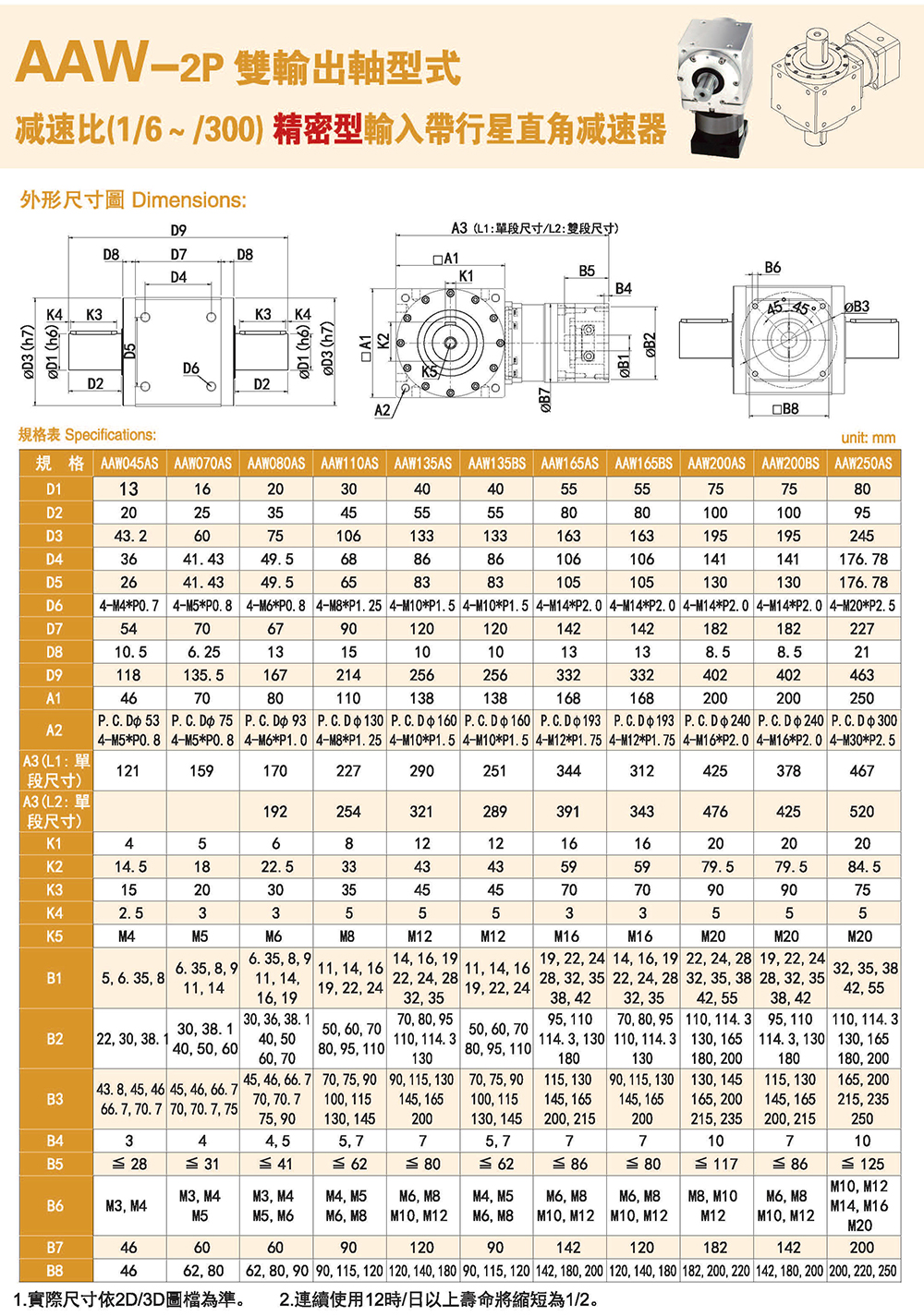 AAW-2P雙輸出軸型式 精密輸入帶行星直角減速器