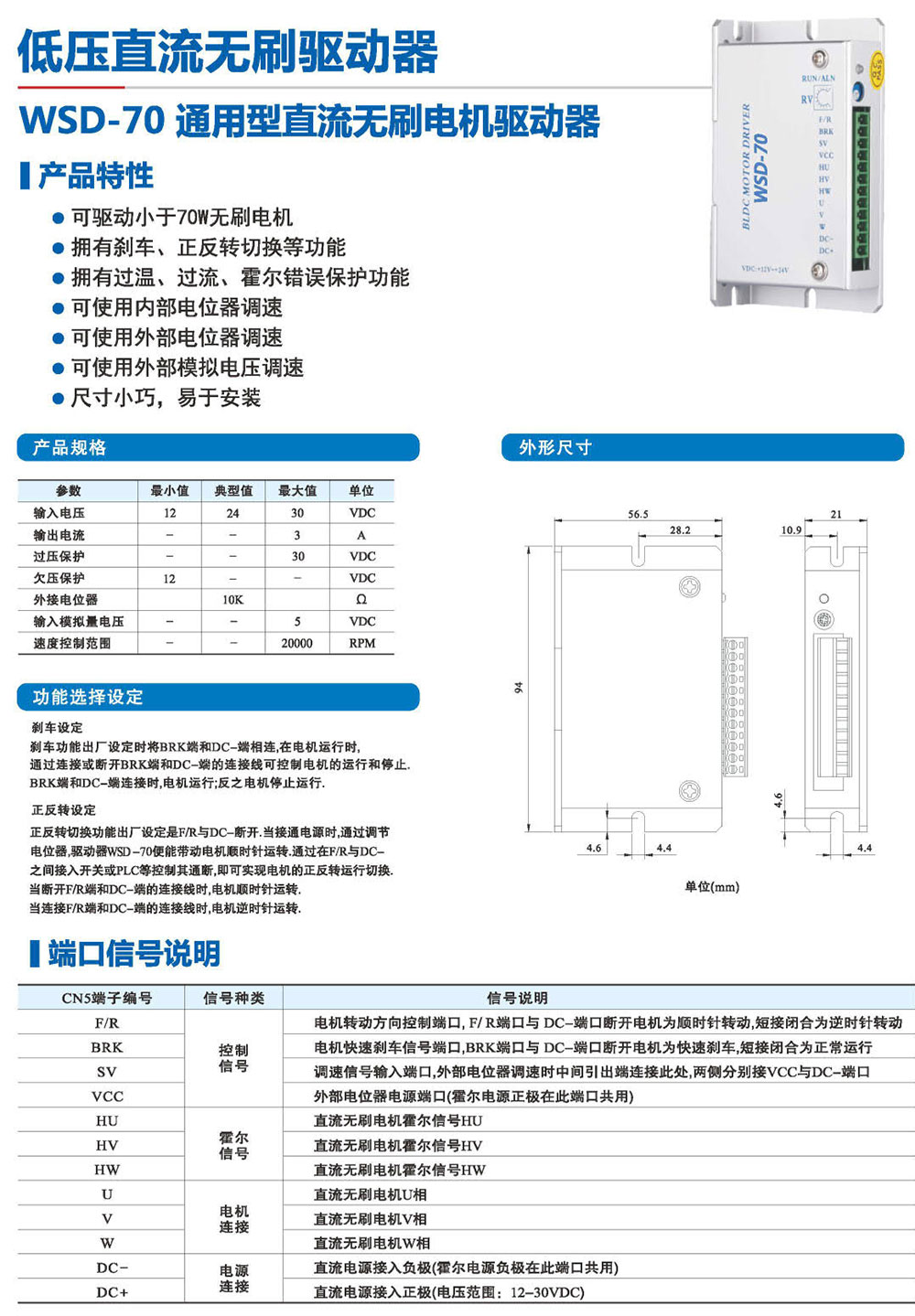 ●可驅(qū)動(dòng)小于70W無(wú)刷電機(jī)