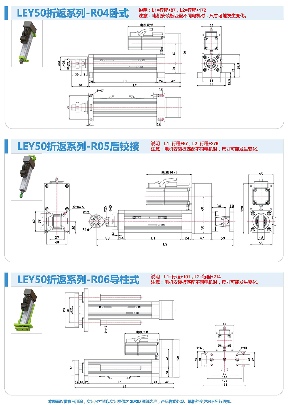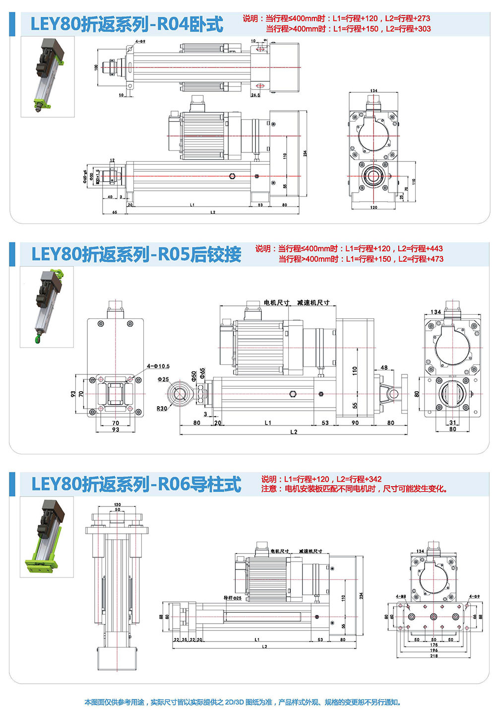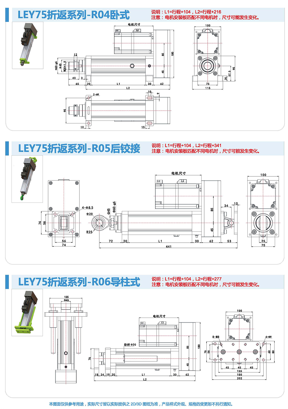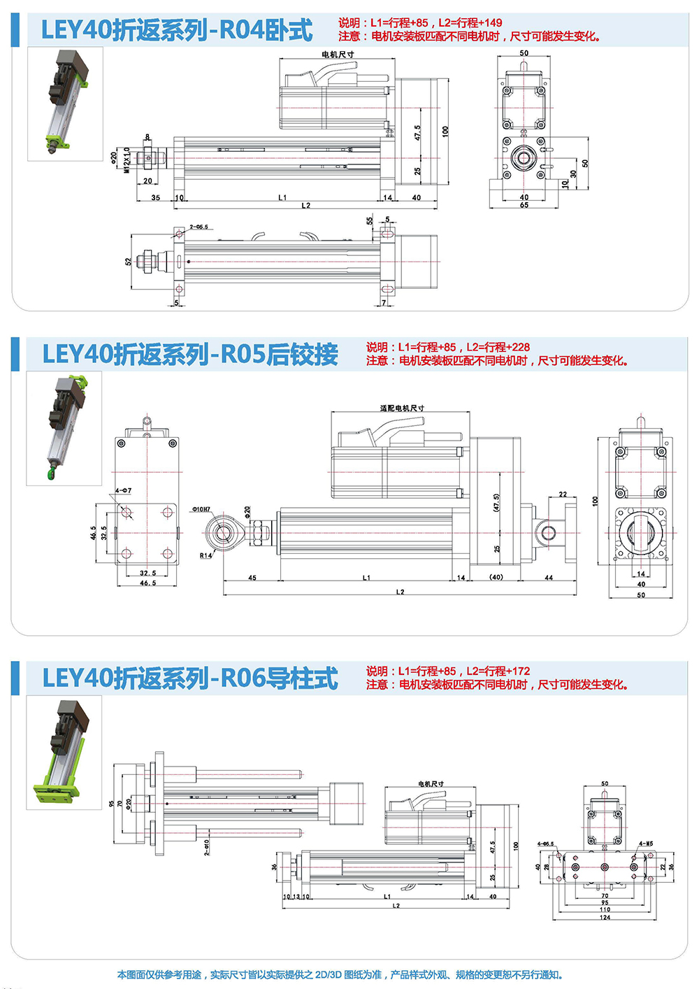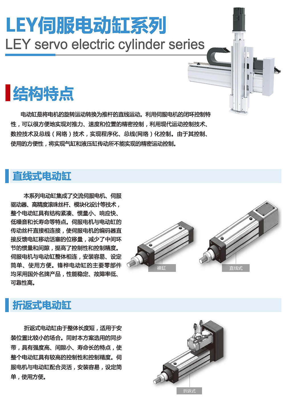 折返式電動缸由于整體長度短,適用于安裝位置比較小的場合。同時本方案選用的同步帶,具有強度高、間隙小壽命長的特點,使整個電動缸具有較高的控制性和控制精度。伺服電機與電動缸配合靈活,安裝容易,設(shè)定簡單,使用方便。