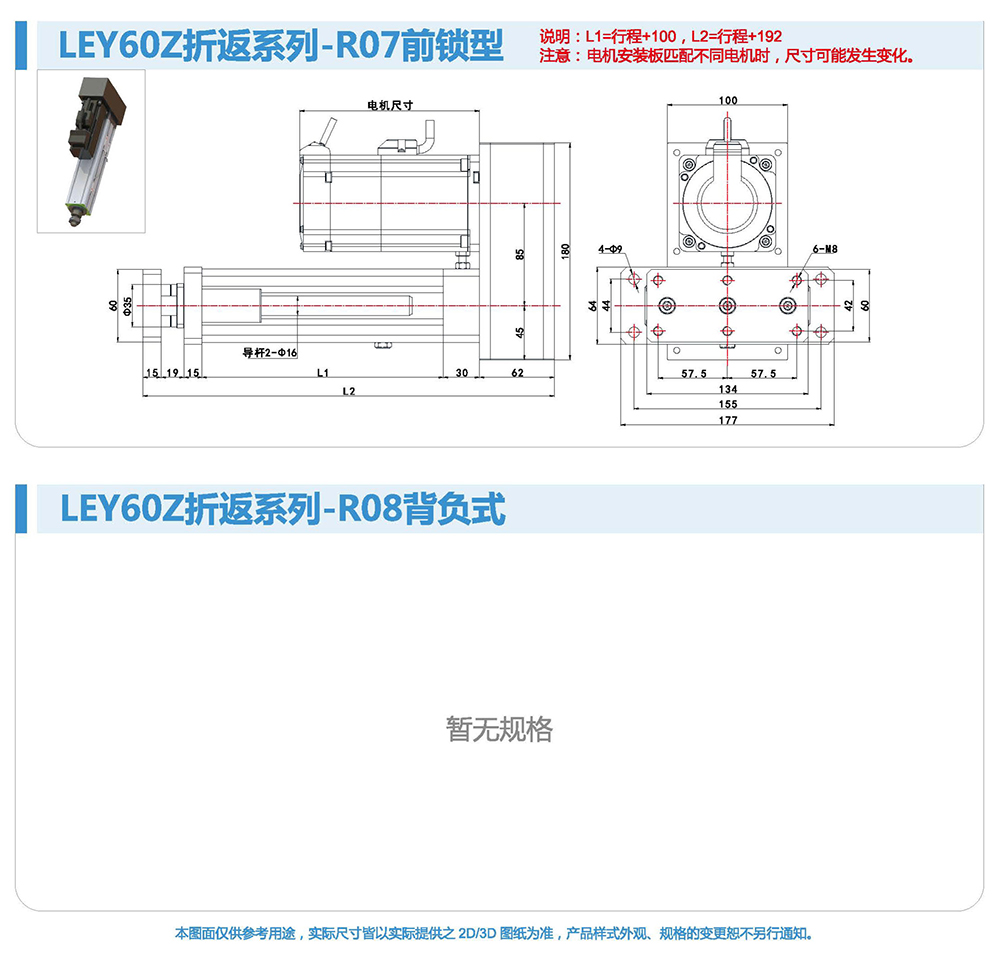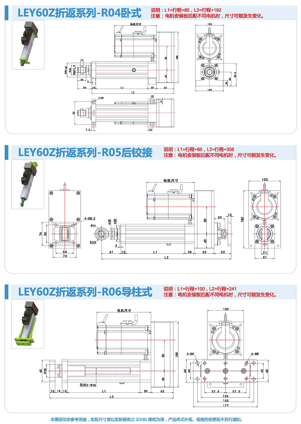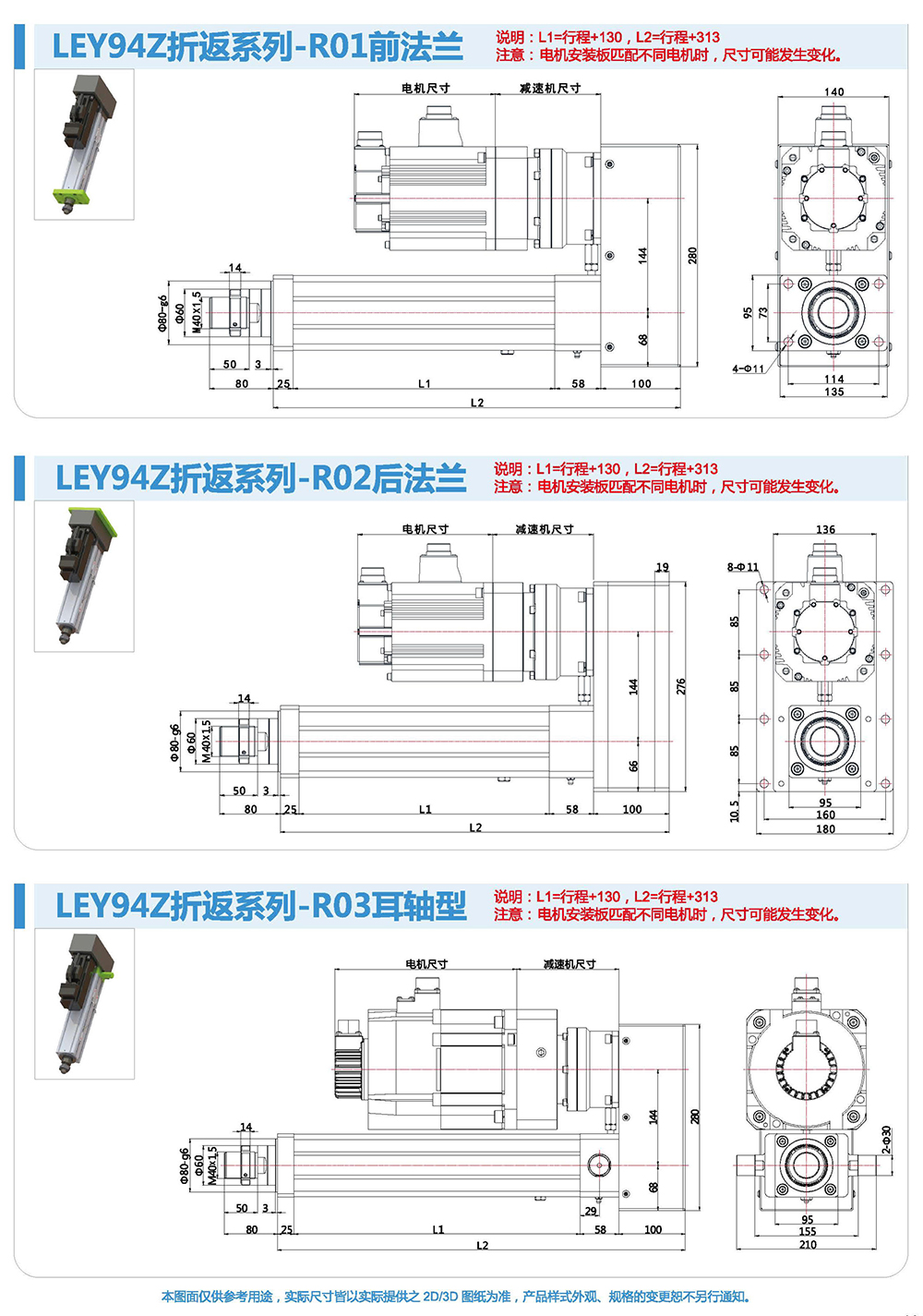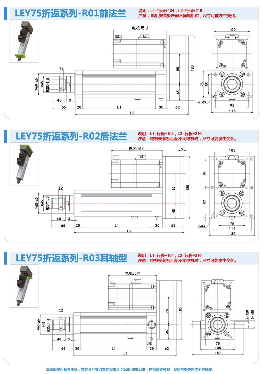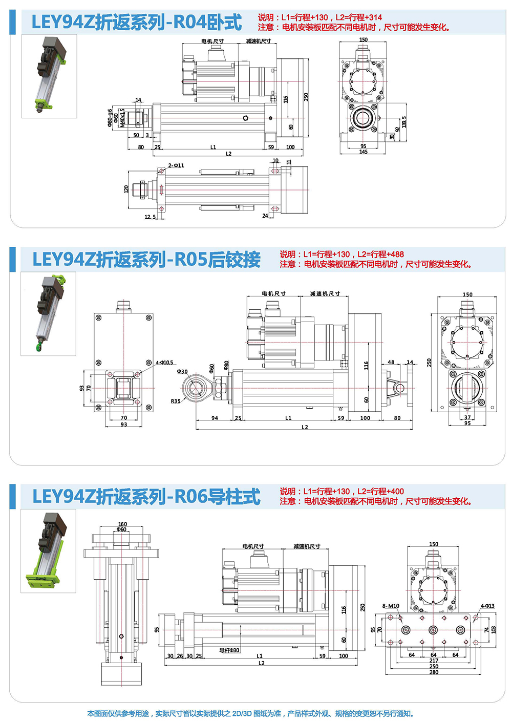 折返式電動缸由于整體長度短,適用于安裝位置比較小的場合。同時本方案選用的同步帶,具有強度高、間隙小壽命長的特點,使整個電動缸具有較高的控制性和控制精度。伺服電機與電動缸配合靈活,安裝容易,設(shè)定簡單,使用方便。