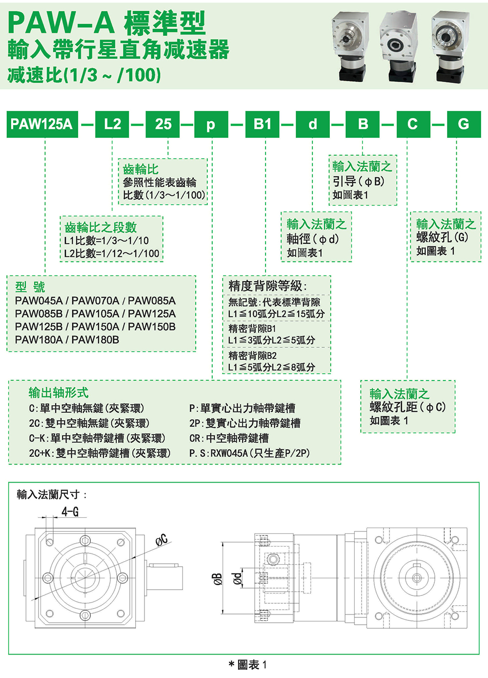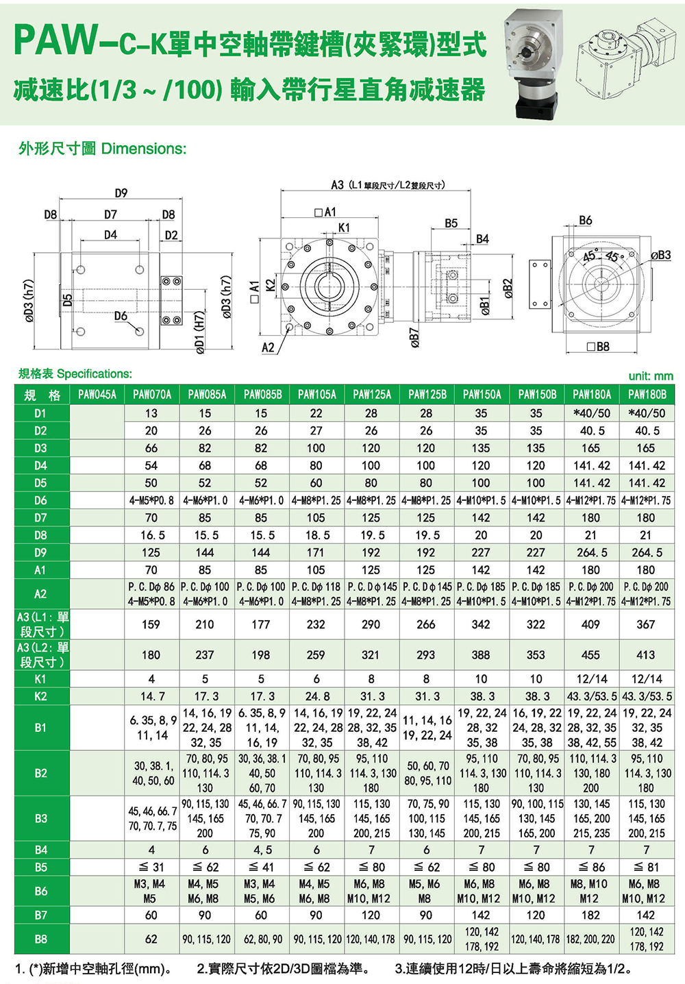 PAW-C-K單中空軸帶鍵槽(夾緊環(huán))型式 輸入帶行星直角減速器