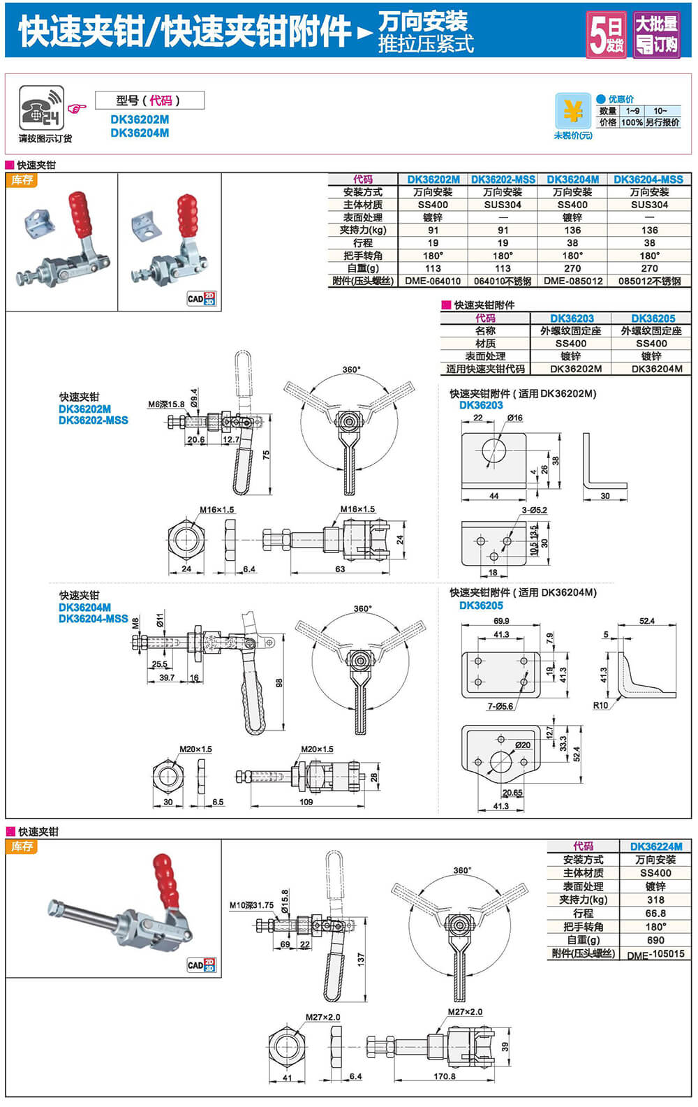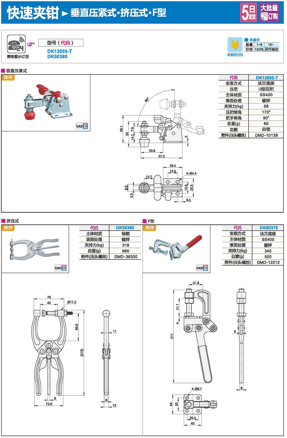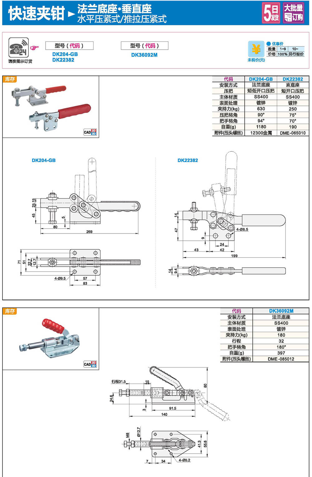 廣泛用于工業(yè)生產中的焊裝治具、機加治具、裝配治具、檢驗治具、機具和各種機圈的鎖定零部件。服務汽車制造業(yè)、機車制造業(yè)、電子及電器產品制造業(yè)、電子設備及電器設備制造業(yè)、家電產品及應用設備制造業(yè)、機床設備制造業(yè)、家具制造業(yè)、各種輕工專機設備制造業(yè)、起重設備及物流設備制造業(yè)、食品及醫(yī)藥設備制造業(yè)、發(fā)動機及發(fā)動機零部件產品制造業(yè)和專業(yè)設備制造業(yè)、電力設備制造業(yè)、通用零部件產品(如閥門、水泵、槽、簡、箱、蓋等)制造業(yè)、橡塑設備及化工設備制造業(yè)等。