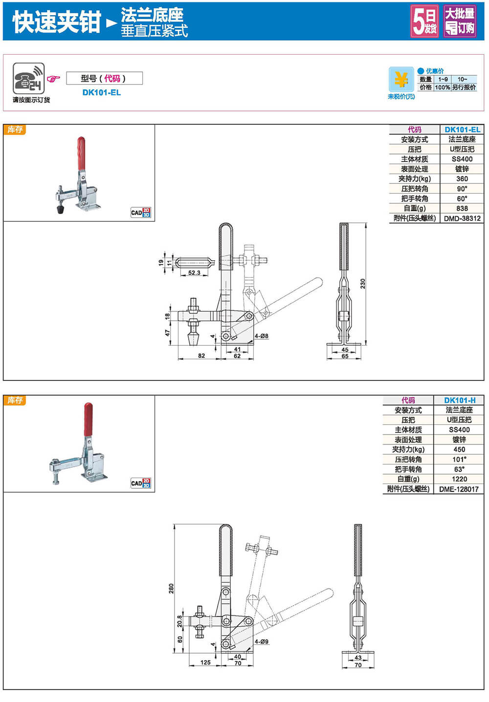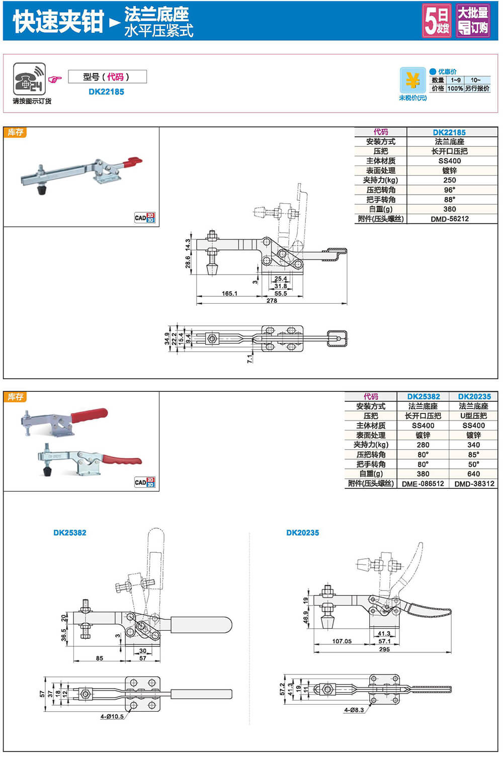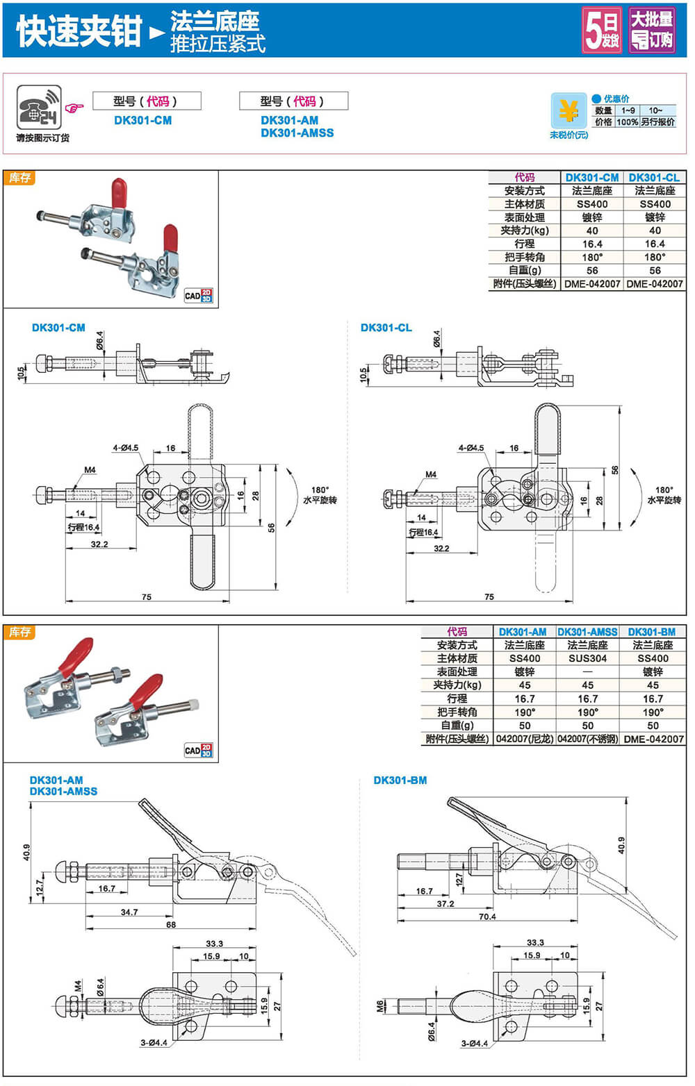 廣泛用于工業(yè)生產中的焊裝治具、機加治具、裝配治具、檢驗治具、機具和各種機圈的鎖定零部件。服務汽車制造業(yè)、機車制造業(yè)、電子及電器產品制造業(yè)、電子設備及電器設備制造業(yè)、家電產品及應用設備制造業(yè)、機床設備制造業(yè)、家具制造業(yè)、各種輕工專機設備制造業(yè)、起重設備及物流設備制造業(yè)、食品及醫(yī)藥設備制造業(yè)、發(fā)動機及發(fā)動機零部件產品制造業(yè)和專業(yè)設備制造業(yè)、電力設備制造業(yè)、通用零部件產品(如閥門、水泵、槽、簡、箱、蓋等)制造業(yè)、橡塑設備及化工設備制造業(yè)等。