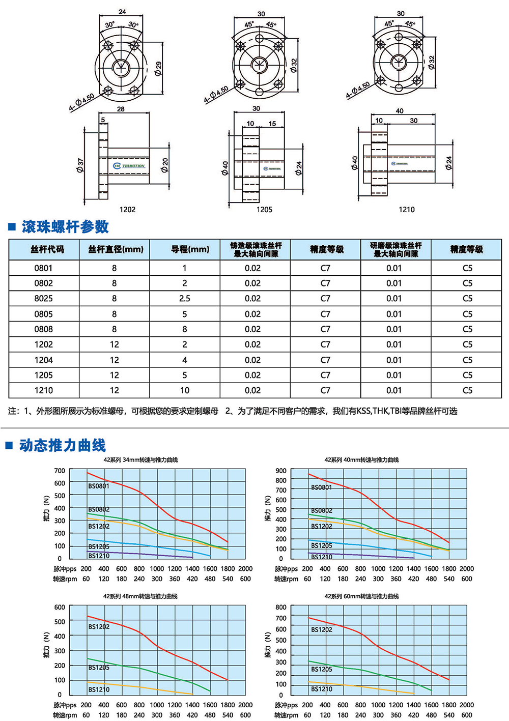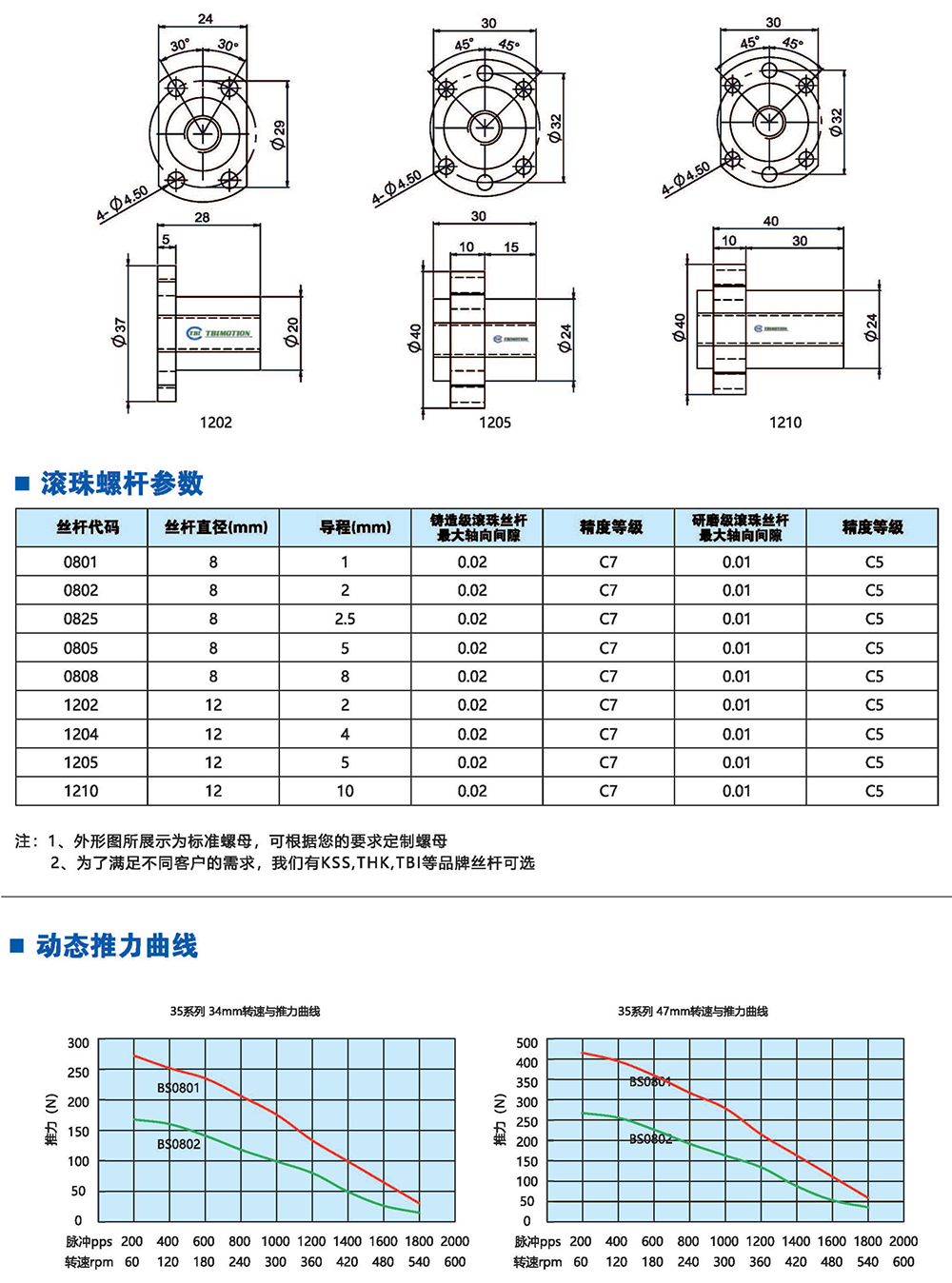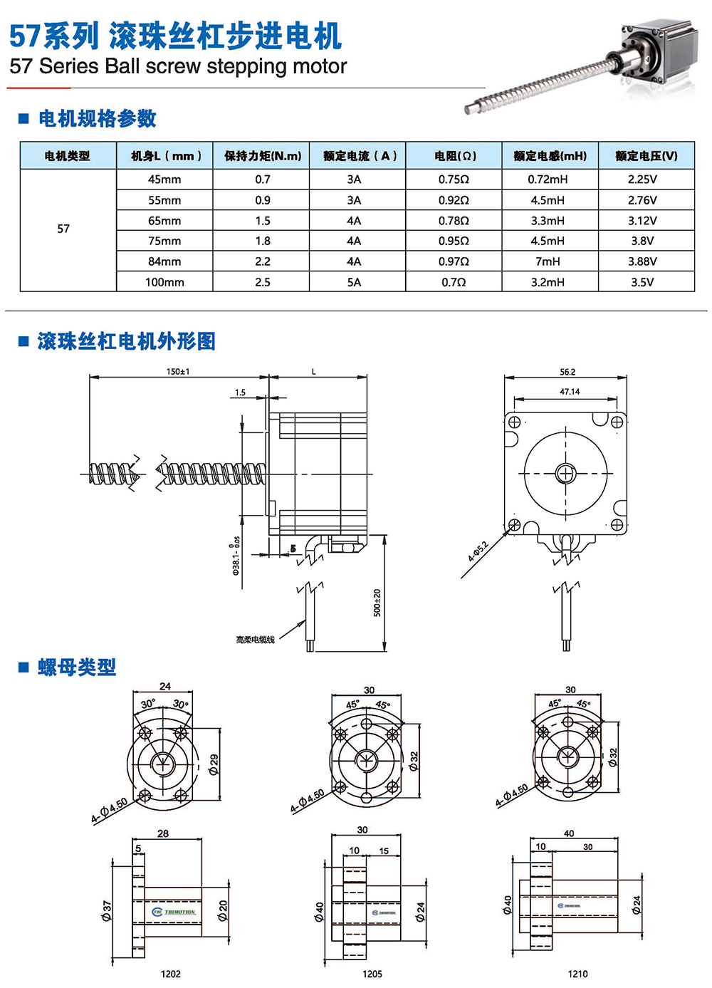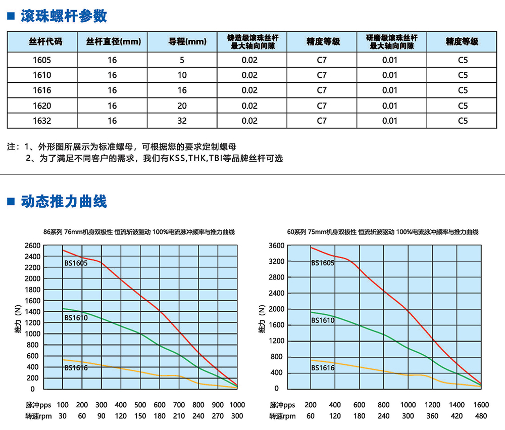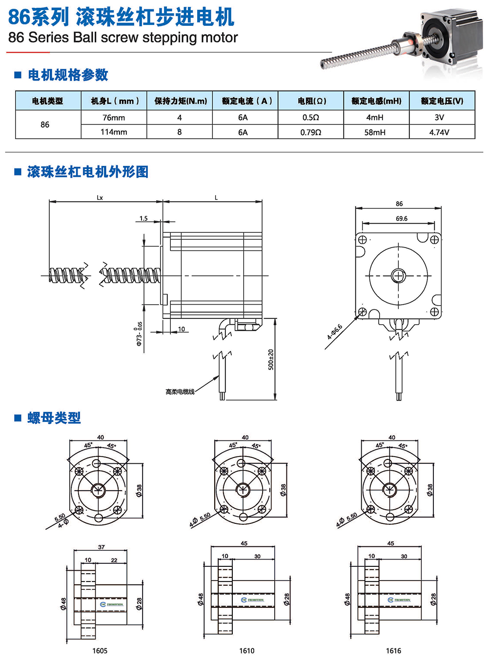 滾珠絲桿步進電機有六種尺寸,外形尺寸從14mm至86mm,滾珠絲桿電機為外部驅(qū)動式。 從0.005mm/步到0. 1mm/步,有多種步長可選。推力可達1600N,全系可 選配編碼器。