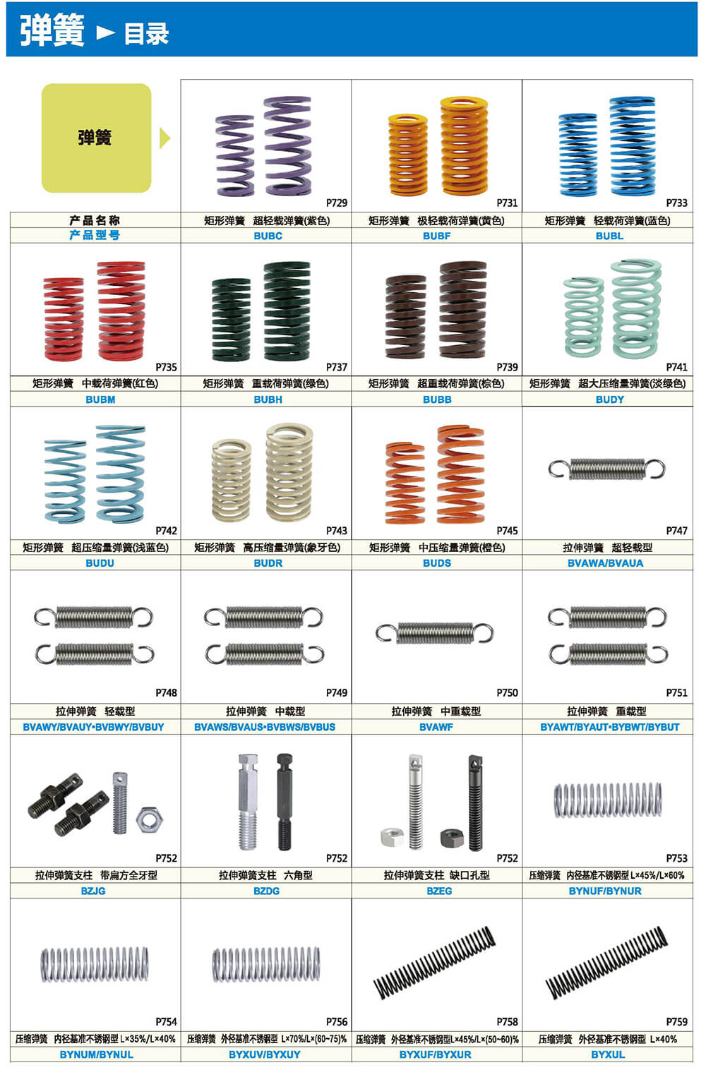 1.圓形截面壓縮彈簧:是承受軸向壓力的螺旋彈簧,它所用的材料截面為圓形。一般為等節(jié)距的,壓縮彈簧的圈與圈之間有一定間隙,當(dāng)受到外載荷時彈簧會收縮變形。其剛度穩(wěn)定,結(jié)構(gòu)簡單,制造方便,應(yīng)用較廣。