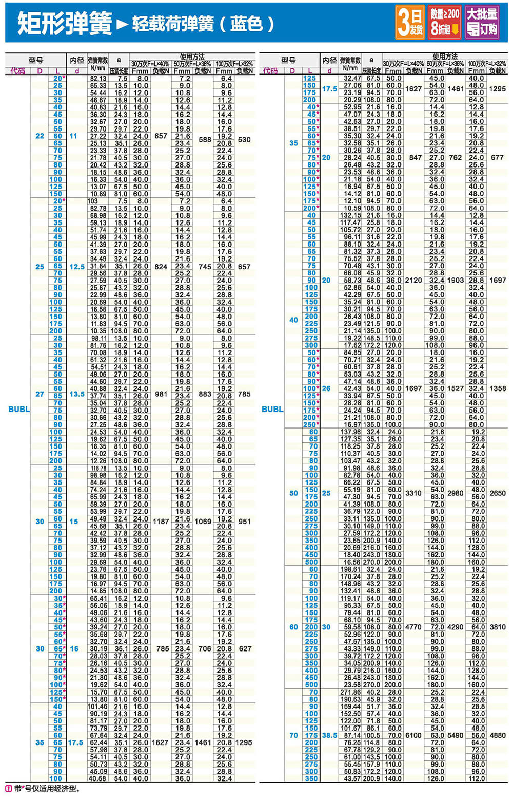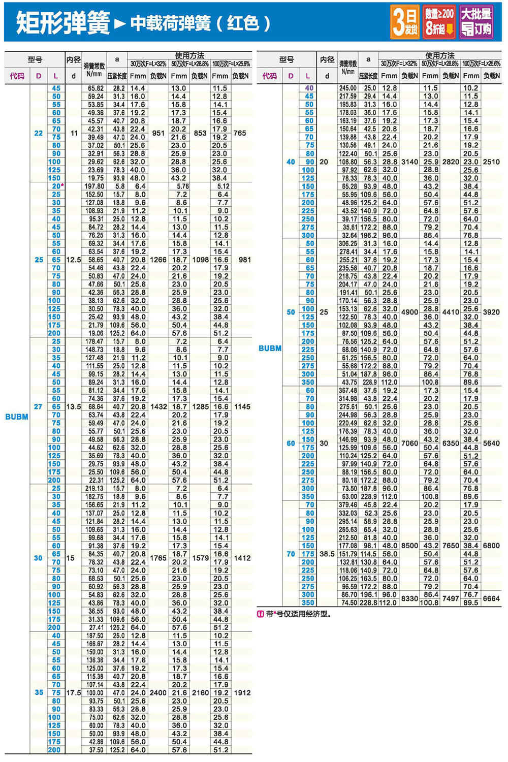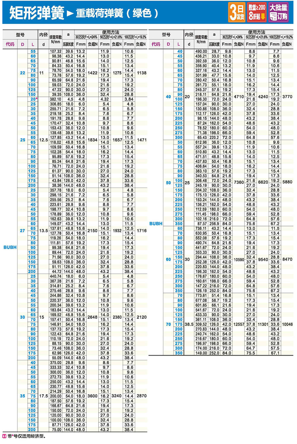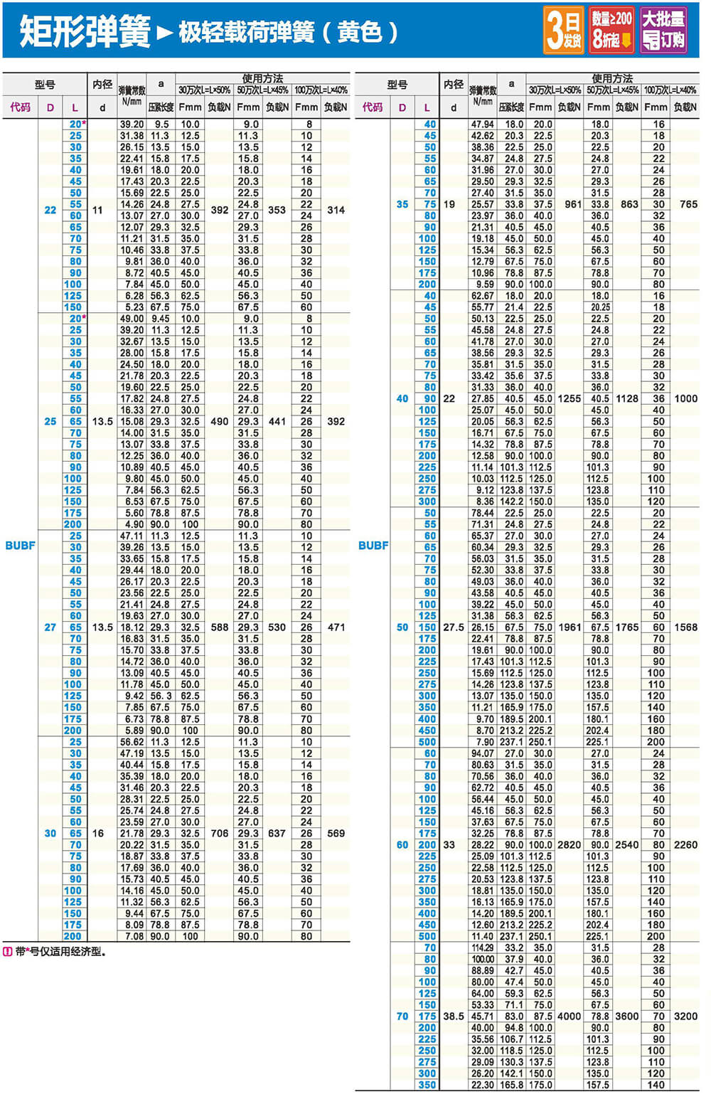 2.矩形截面壓縮彈簧:性質(zhì)和圓形截面圓柱螺旋彈簧相似,區(qū)別在于它所用的材料截面為矩形。在同樣空間條件下,矩形截面螺旋壓縮彈簧剛度更大,吸收的能量更多。