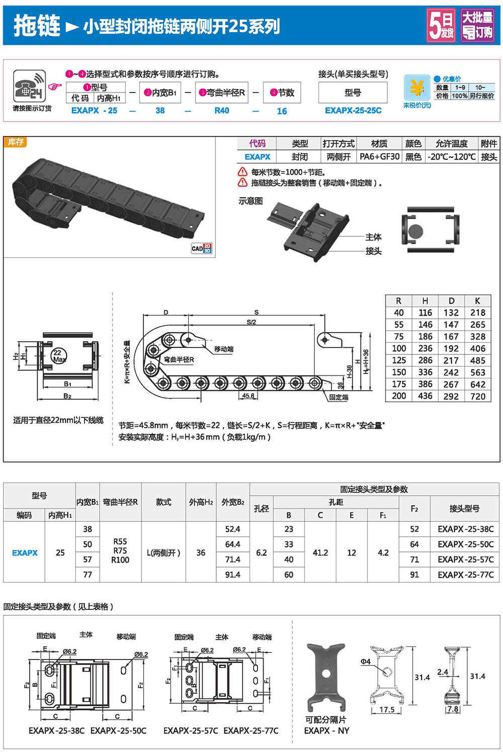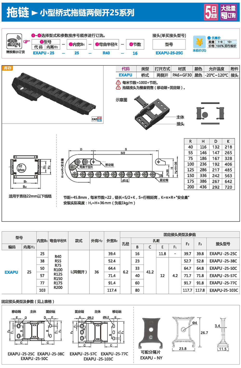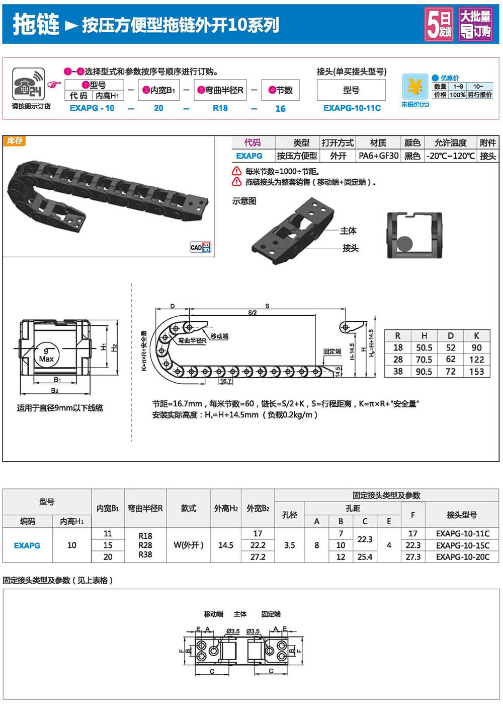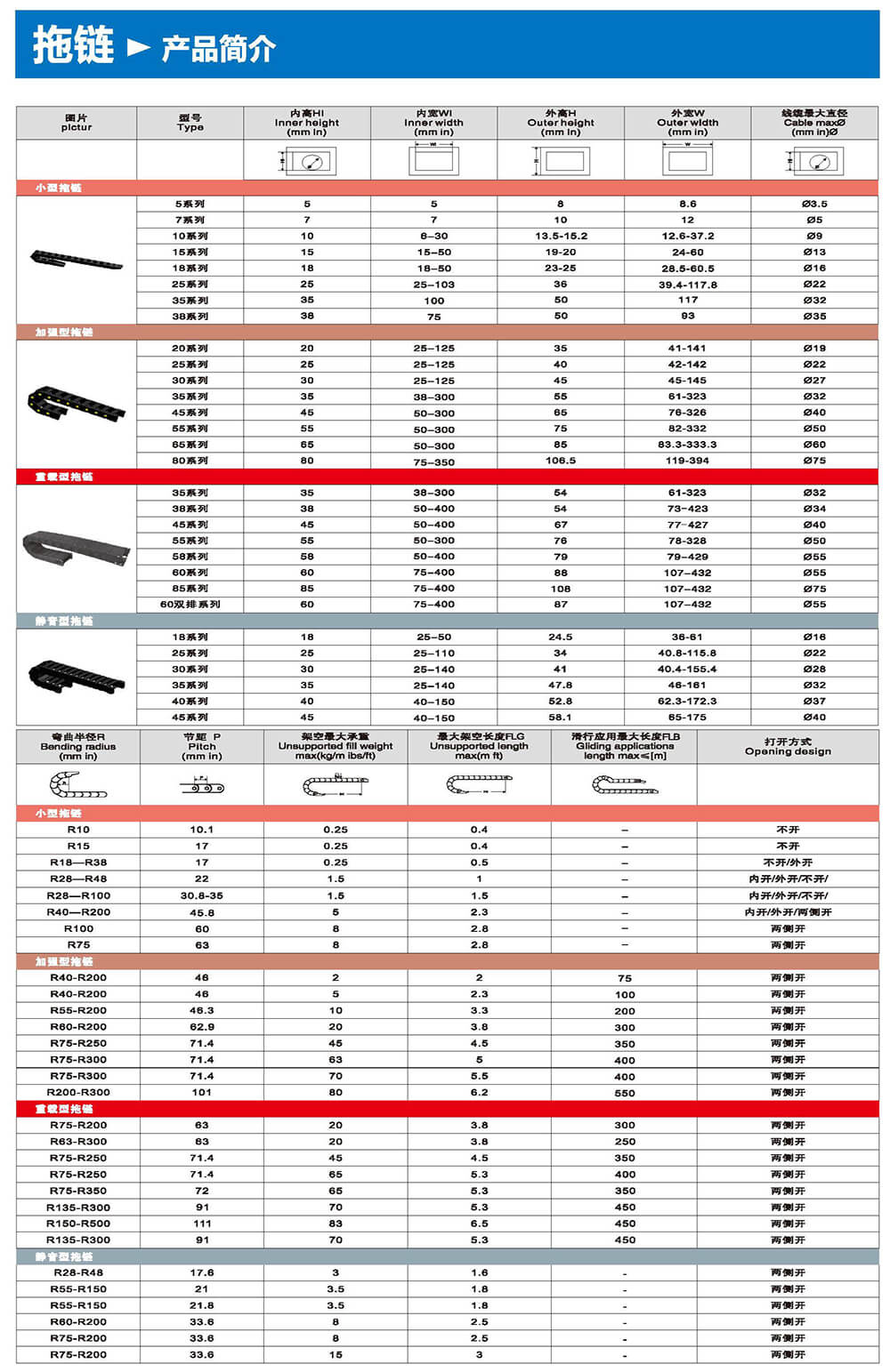 適合于使用在往復(fù)運(yùn)動(dòng)的場合,能夠?qū)?nèi)置的電纜、油管、氣管、水管等起到牽引和保護(hù)作用,拖鏈每節(jié)都能打開,便于安裝和維修。運(yùn)動(dòng)時(shí)噪音低、耐磨、可高速運(yùn)動(dòng)。拖鏈已被廣泛應(yīng)用于數(shù)控機(jī)床.電子設(shè)備、石材機(jī)械、玻璃機(jī)械、門窗機(jī)械、注塑機(jī)、機(jī)械手、起重運(yùn)輸設(shè)備、自動(dòng)化倉庫等。