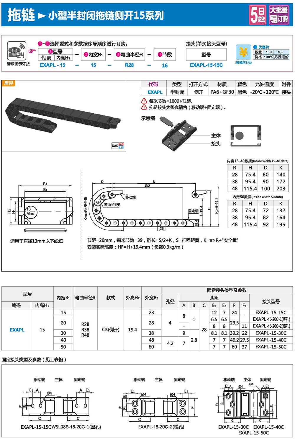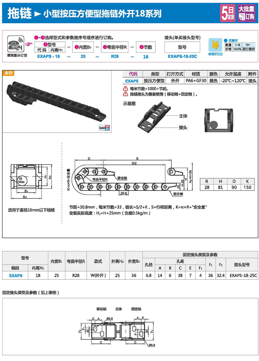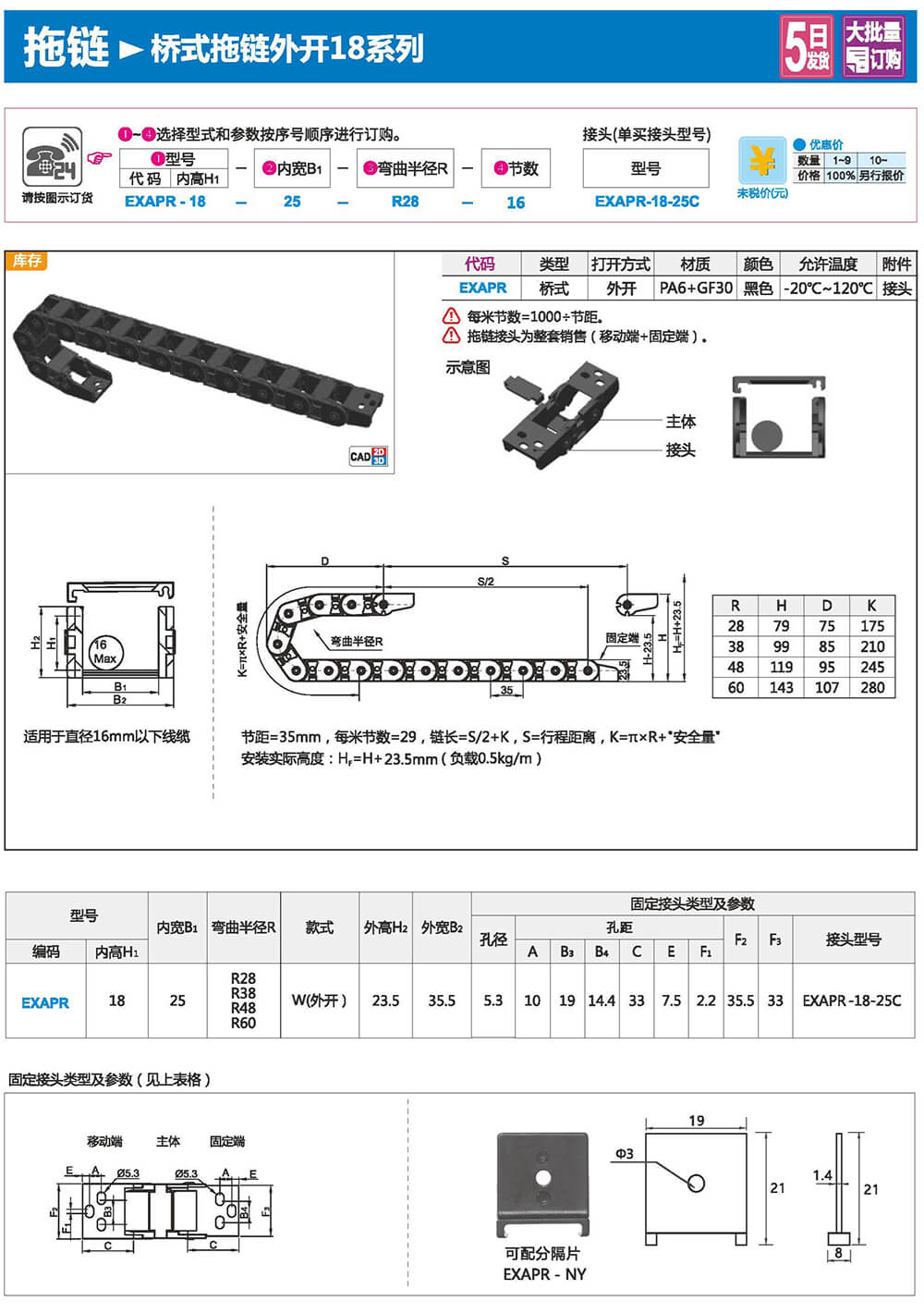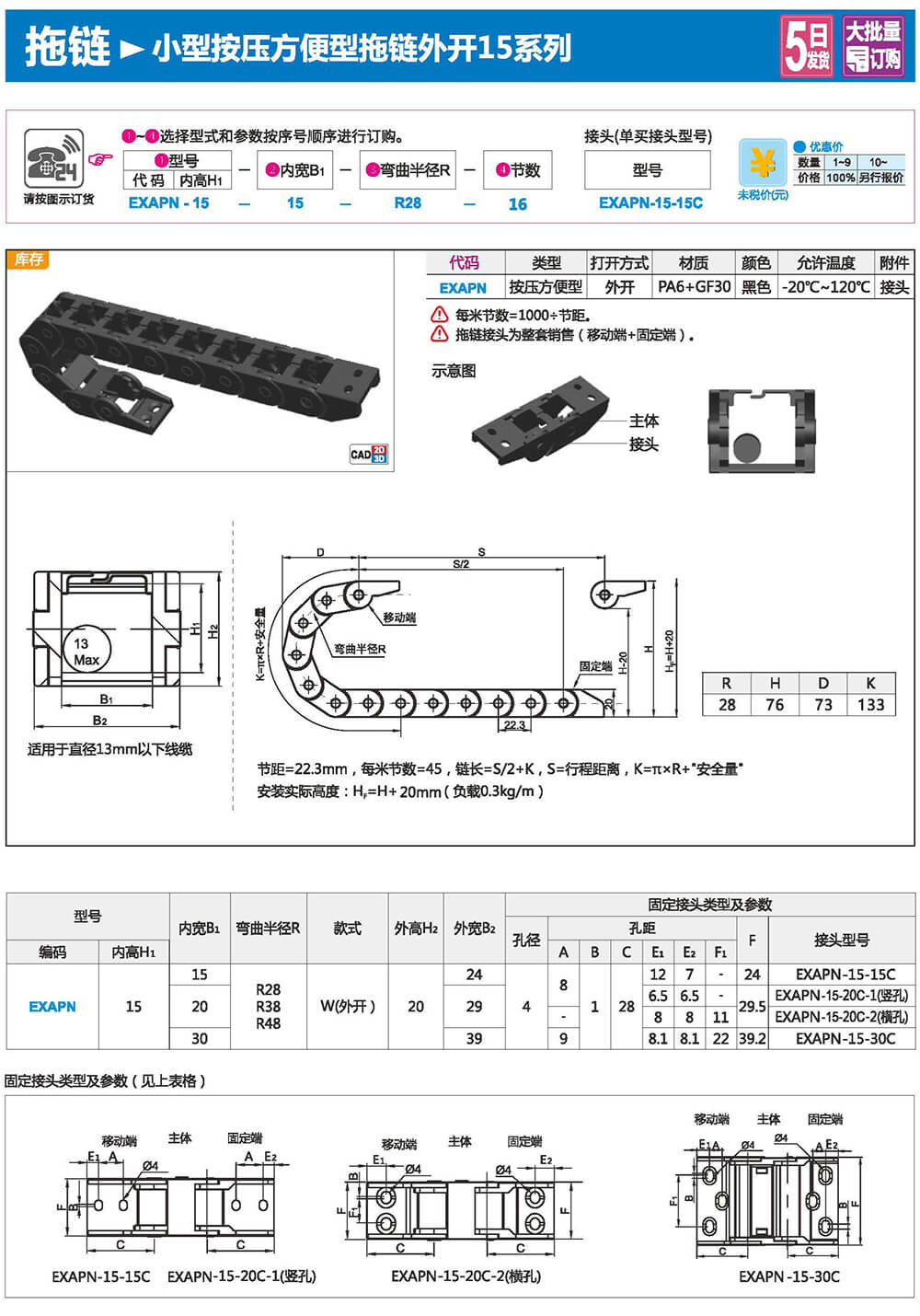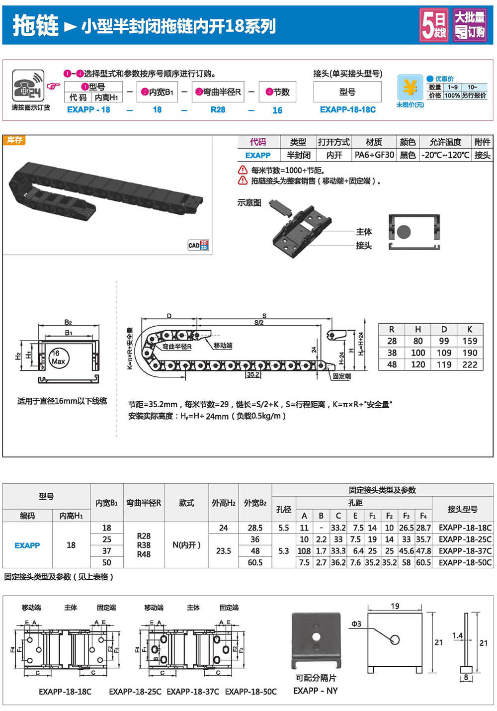 適合于使用在往復(fù)運(yùn)動(dòng)的場合,能夠?qū)?nèi)置的電纜、油管、氣管、水管等起到牽引和保護(hù)作用,拖鏈每節(jié)都能打開,便于安裝和維修。運(yùn)動(dòng)時(shí)噪音低、耐磨、可高速運(yùn)動(dòng)。拖鏈已被廣泛應(yīng)用于數(shù)控機(jī)床.電子設(shè)備、石材機(jī)械、玻璃機(jī)械、門窗機(jī)械、注塑機(jī)、機(jī)械手、起重運(yùn)輸設(shè)備、自動(dòng)化倉庫等。