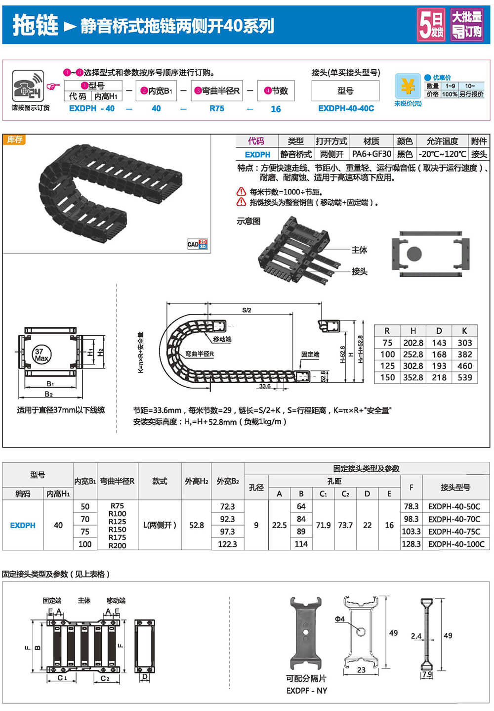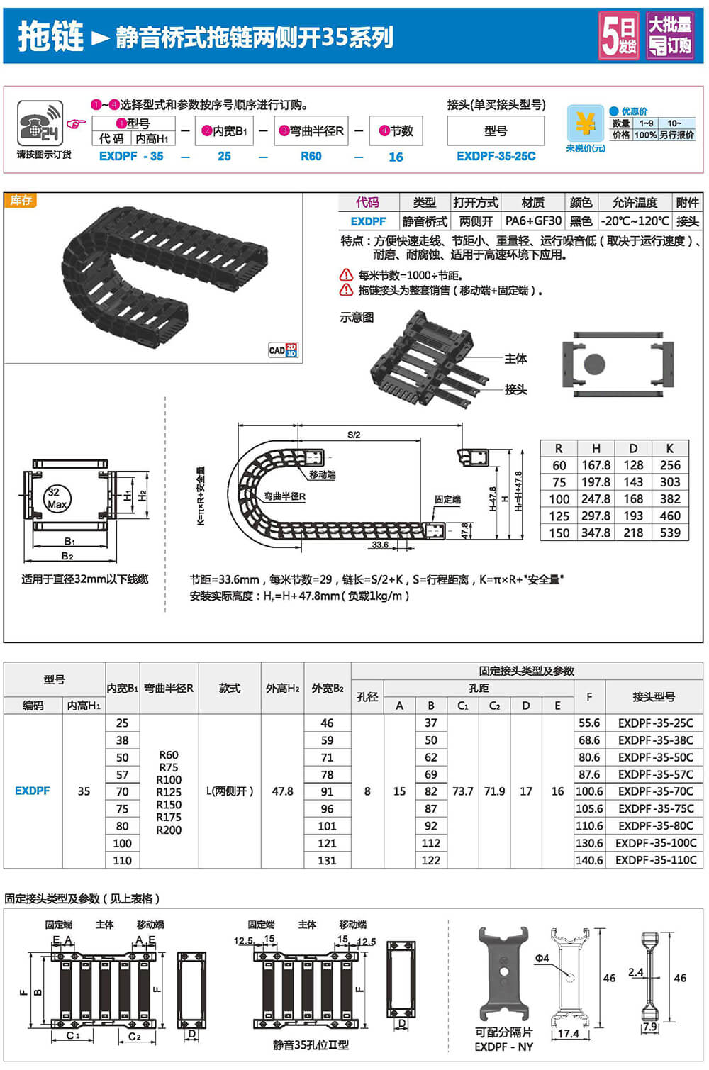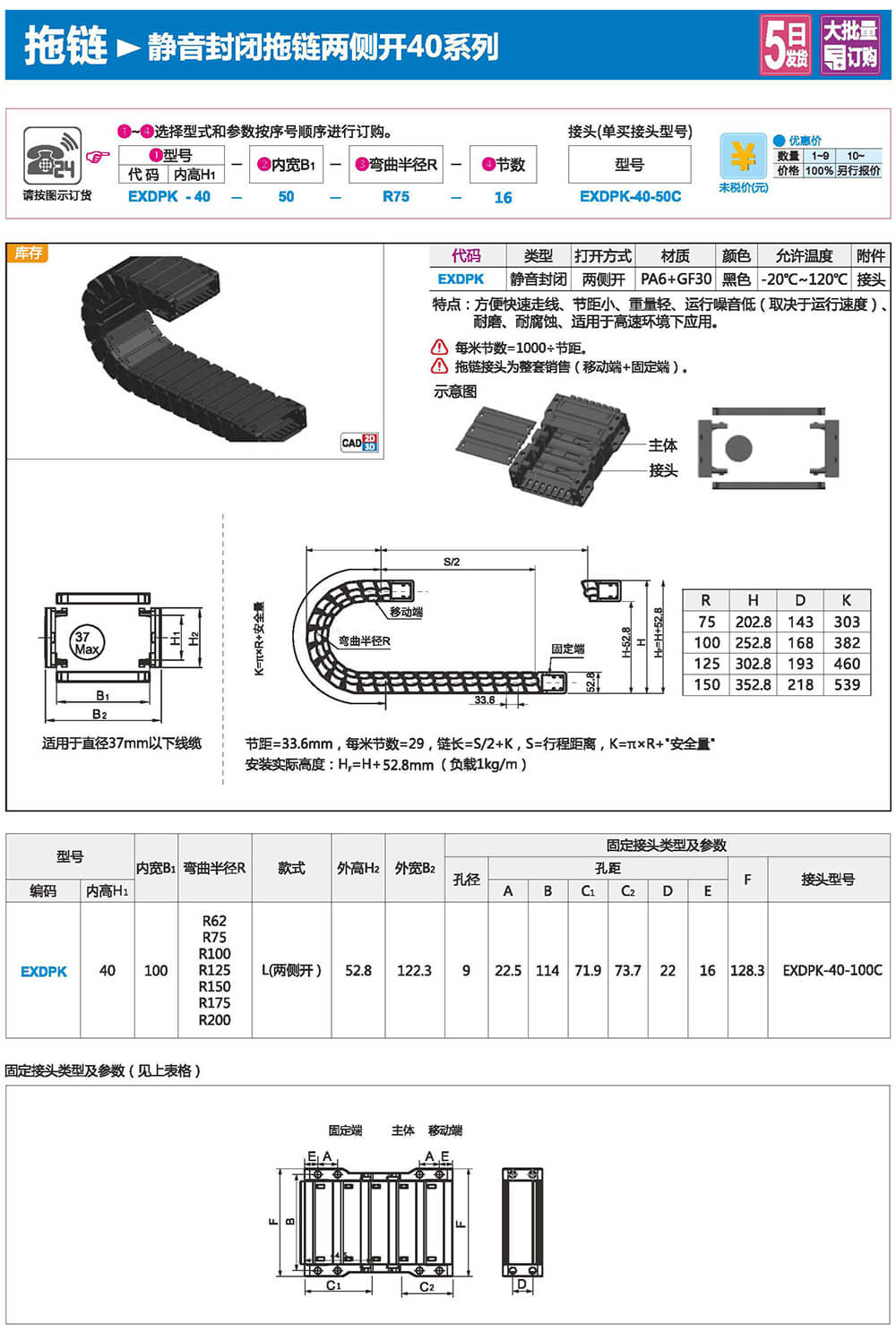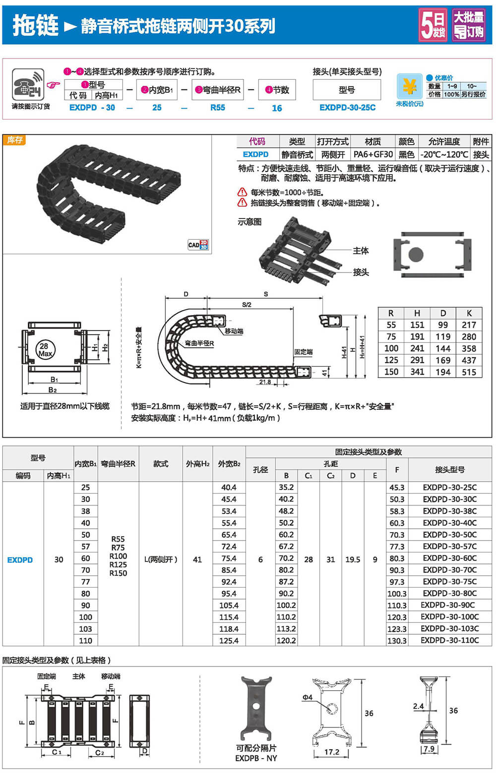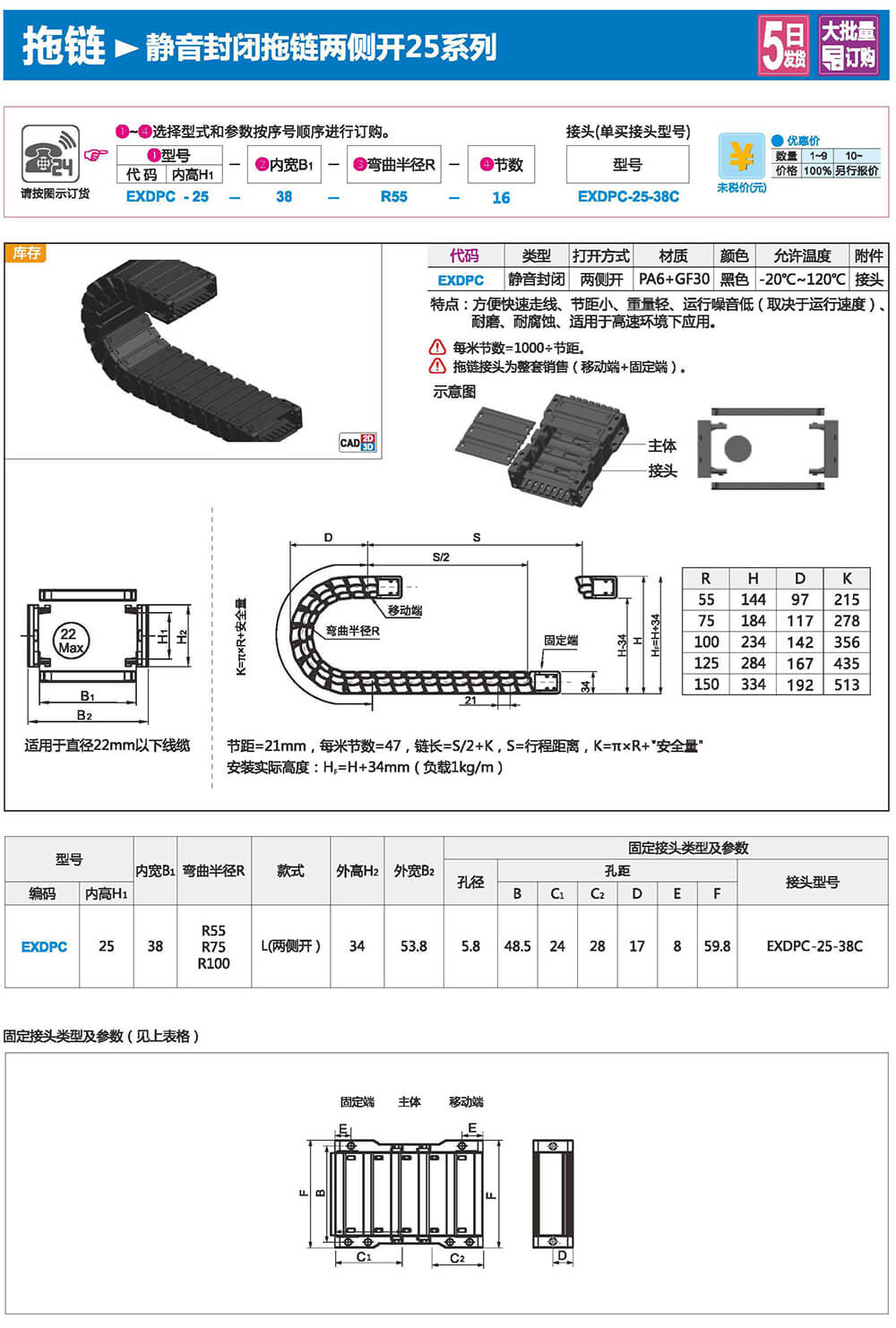 適合于使用在往復(fù)運(yùn)動(dòng)的場(chǎng)合,能夠?qū)?nèi)置的電纜、油管、氣管、水管等起到牽引和保護(hù)作用,拖鏈每節(jié)都能打開,便于安裝和維修。運(yùn)動(dòng)時(shí)噪音低、耐磨、可高速運(yùn)動(dòng)。拖鏈已被廣泛應(yīng)用于數(shù)控機(jī)床.電子設(shè)備、石材機(jī)械、玻璃機(jī)械、門窗機(jī)械、注塑機(jī)、機(jī)械手、起重運(yùn)輸設(shè)備、自動(dòng)化倉(cāng)庫(kù)等。