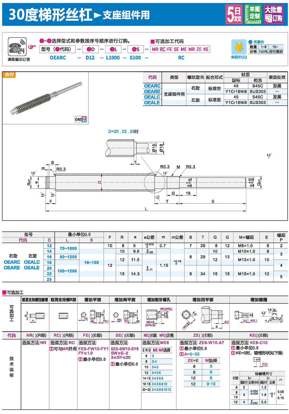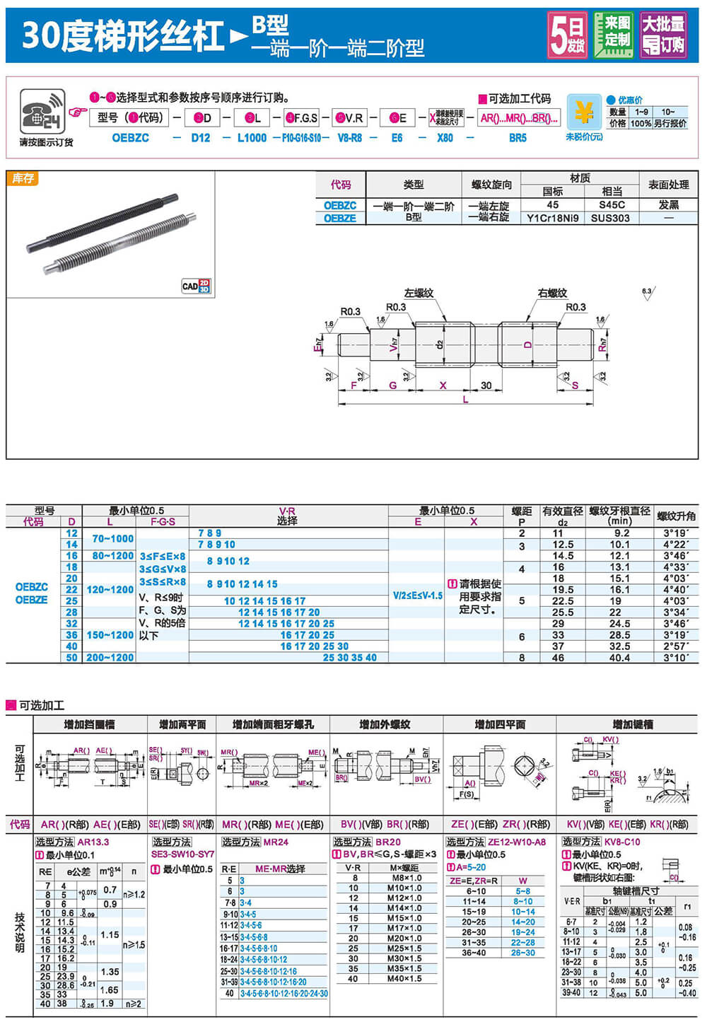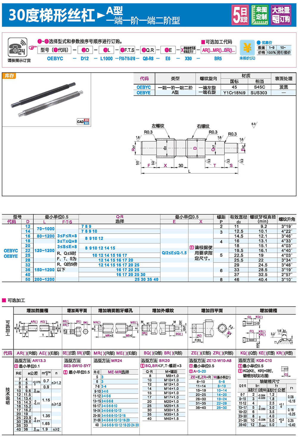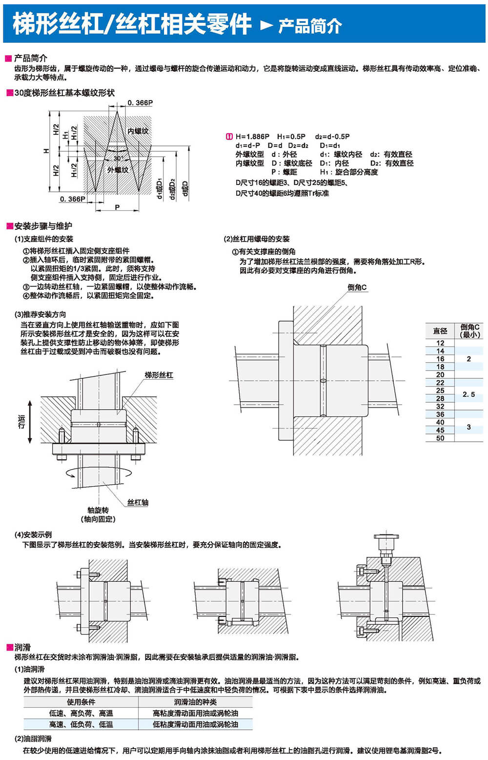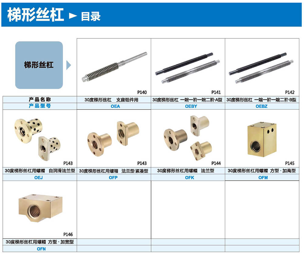 齒形為梯形齒,屬于螺旋傳動的一種, 通過螺母與螺桿的旋合傳遞運(yùn)動和動力,它是將旋轉(zhuǎn)運(yùn)動變成直線運(yùn)動。梯形絲杠具有傳動效事高、定位準(zhǔn)確、承載力大等特點(diǎn)。