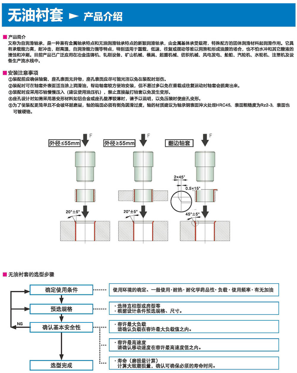 又稱為自潤(rùn)滑軸承,是-一種兼有金屬軸承特點(diǎn)和無(wú)油潤(rùn)滑軸承特點(diǎn)的新穎潤(rùn)滑軸承,由金屬基體承受載荷,特殊配方的固體潤(rùn)滑材料起潤(rùn)滑作用。它具有承載能力高,耐沖擊,耐高溫,自潤(rùn)滑能力強(qiáng)等特點(diǎn),特別適用于重載,低速,往復(fù)或擺動(dòng)等難以潤(rùn)滑和形成油膜的場(chǎng)合,也不怕水沖和其它酸液的浸蝕和沖刷。目前產(chǎn)品已廣泛應(yīng)用在冶金連鑄機(jī)、軋剛設(shè)備、礦山機(jī)械、模具,起重機(jī)械.紡織機(jī)械、風(fēng)電發(fā)電、船舶、汽輪機(jī)、水輪機(jī)、注塑機(jī)及設(shè)備生產(chǎn)流水線中。