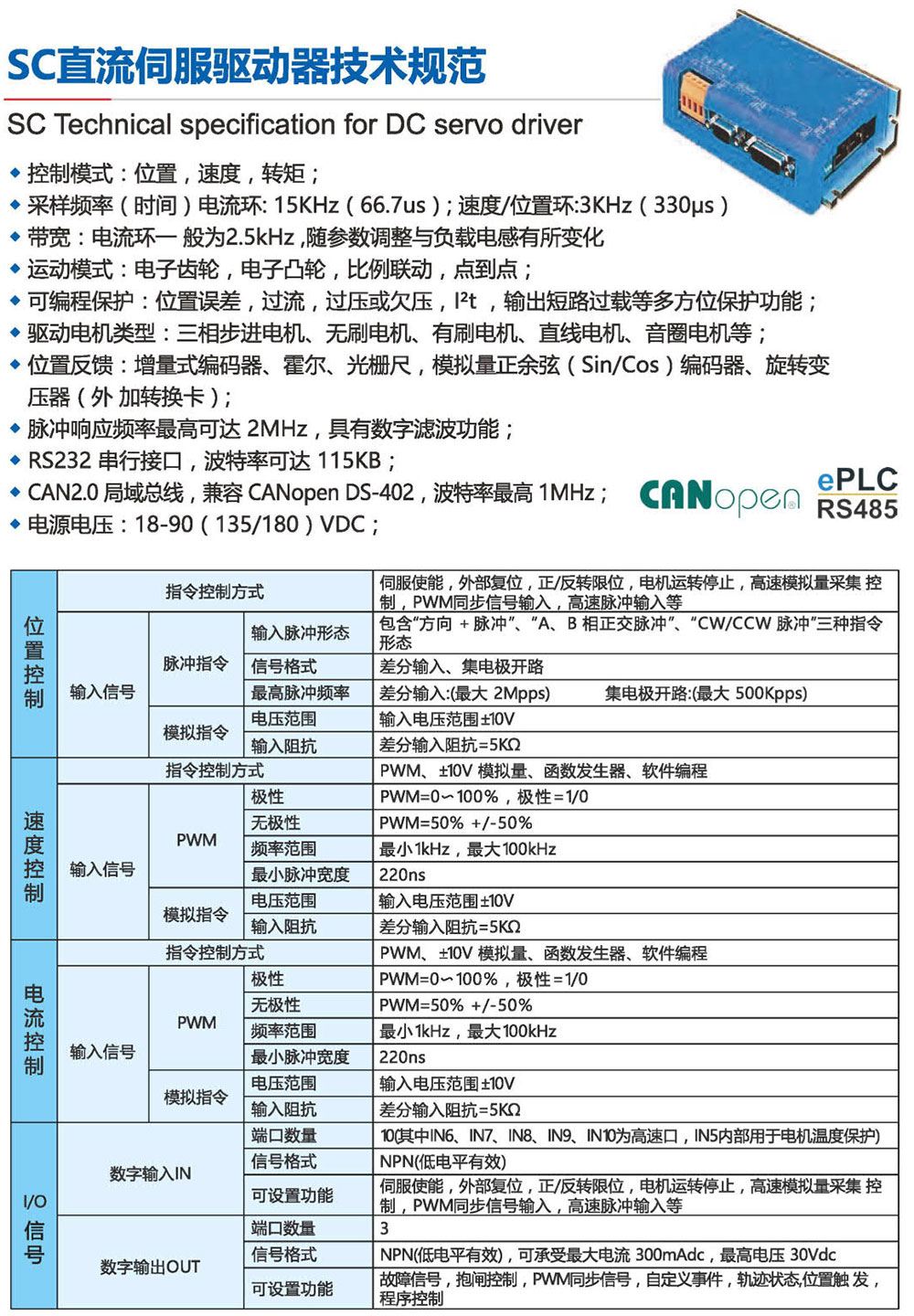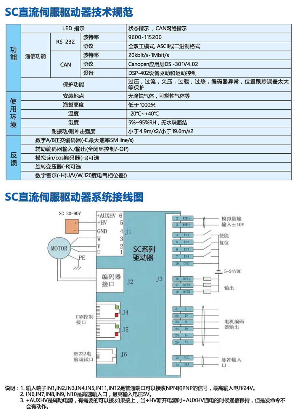 ◆CAN2.0局域總線,兼容CANopen DS- 402 ,波特率1MHz ;