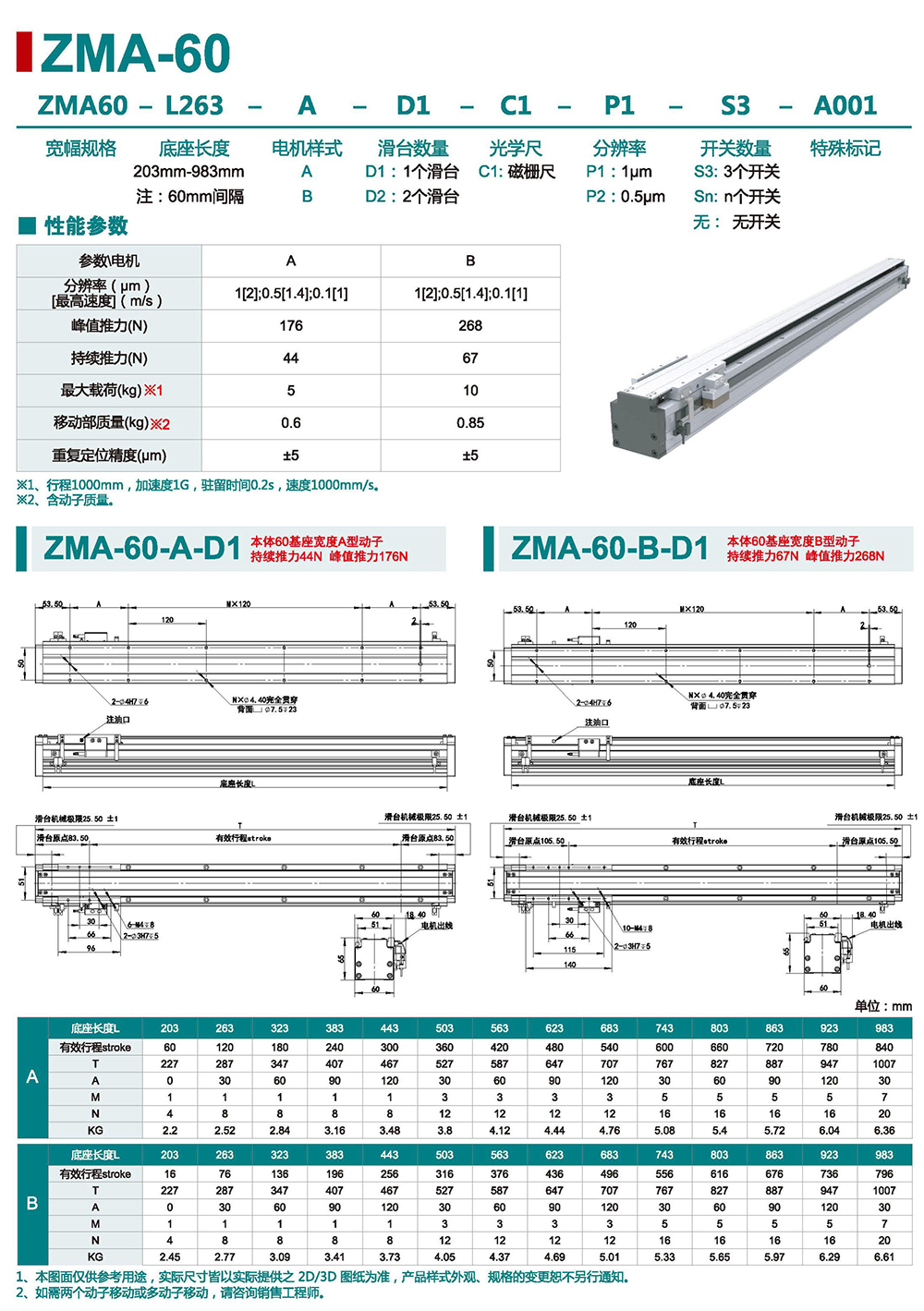 ZMA系列將滑動(dòng)座與動(dòng)子整合,以鋁型材本體內(nèi)嵌導(dǎo)軌的形式,并整合光柵尺進(jìn)行位置反饋,使整個(gè)模組尺寸具有高緊湊、高剛性的特性,提供使用者在特定推力需求下?lián)碛谐叽缱罴鸦倪x擇。