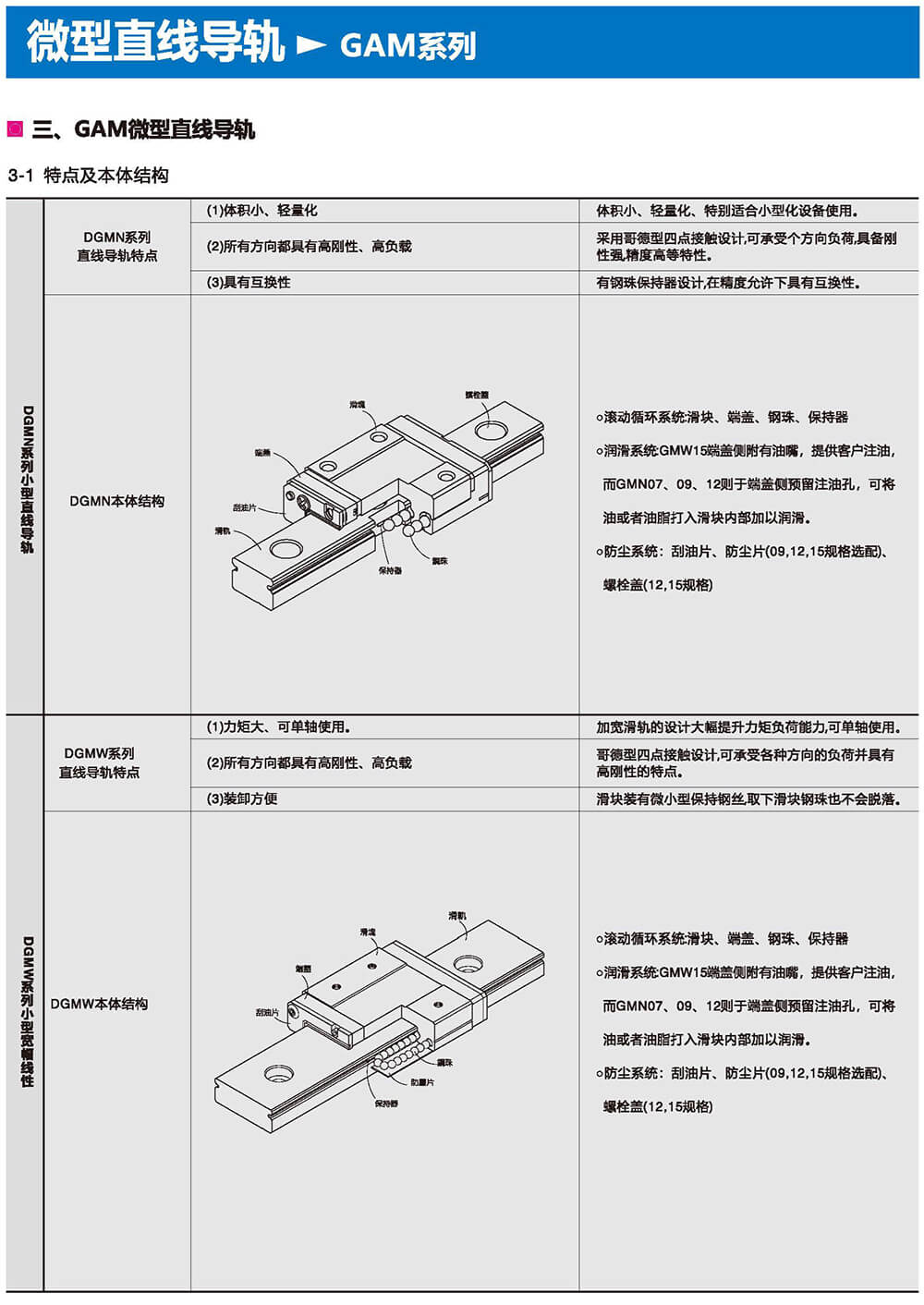 直線導(dǎo)軌由鋼珠在滑塊與滑軌之間作無限滾動循環(huán)負(fù)載平臺能沿著滑軌輕易地以高精度做線性運(yùn)動。與傳統(tǒng)的滑動導(dǎo)引相比較滾動引導(dǎo)的摩擦系數(shù)可降低至1/50,由于啟動的摩擦力大大減少,相對的較少無效運(yùn)動發(fā)生故而能輕易達(dá)到μum級進(jìn)給及定位。在加上滑塊與滑軌的束制單元設(shè)計,使得線性導(dǎo)軌可同時承受上下左右等各個方向的負(fù)荷上述陳列特點并非傳統(tǒng)滑動導(dǎo)引所能比擬因此機(jī)臺若能配合滾珠螺桿,使用線性導(dǎo)軌作導(dǎo)引必能大幅提高設(shè)備精度與機(jī)械效能。