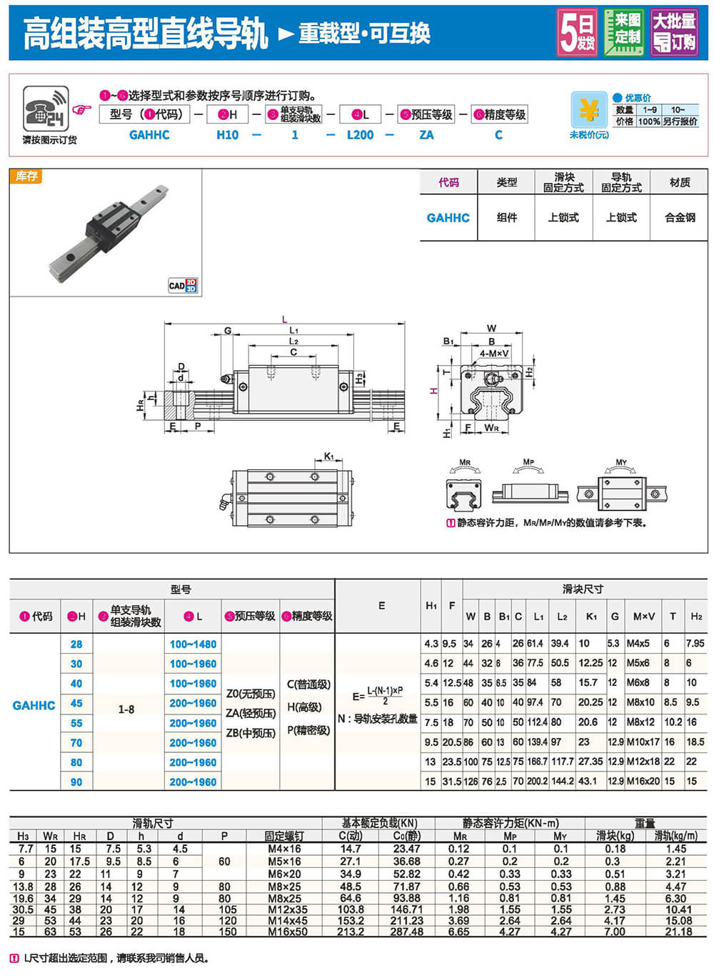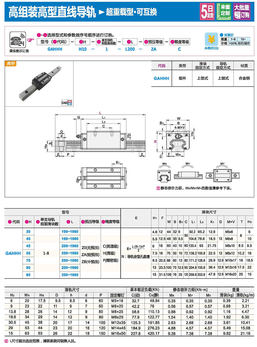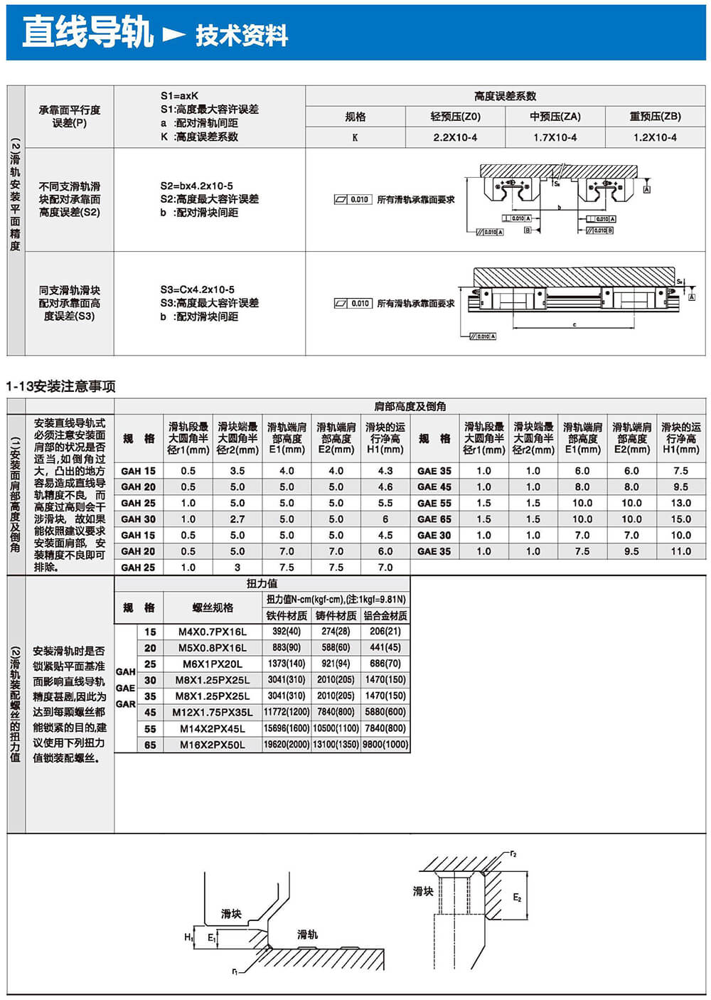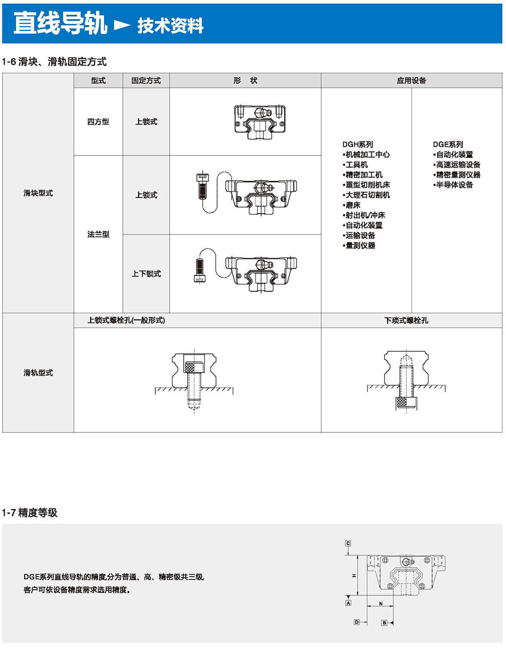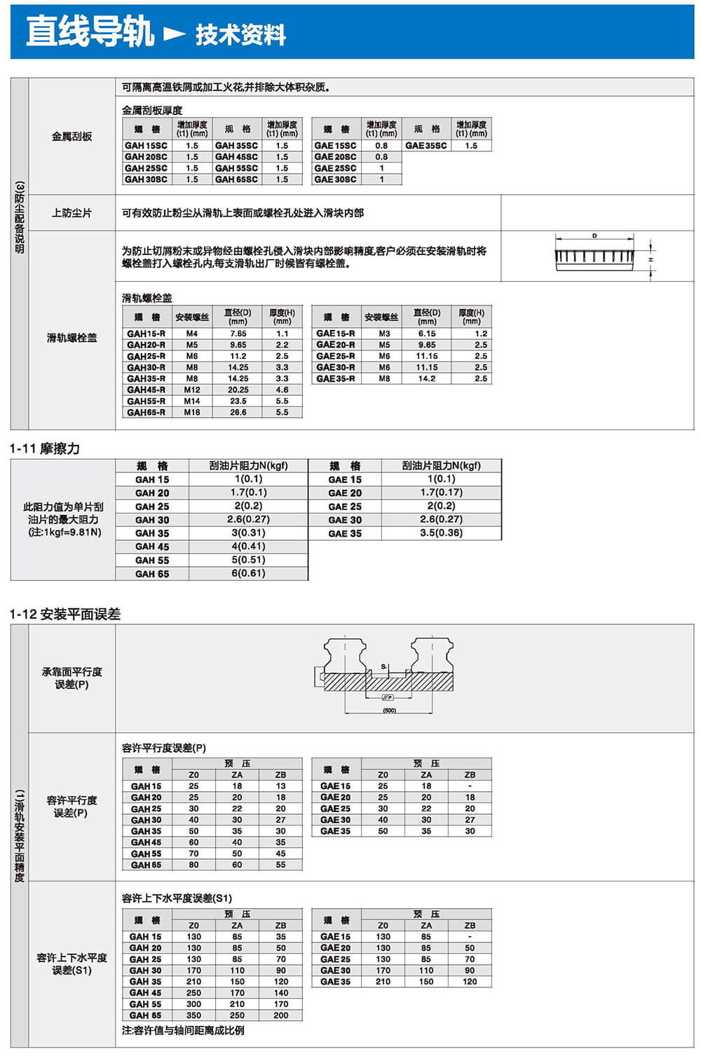 直線導(dǎo)軌由鋼珠在滑塊與滑軌之間作無限滾動(dòng)循環(huán)負(fù)載平臺(tái)能沿著滑軌輕易地以高精度做線性運(yùn)動(dòng)。與傳統(tǒng)的滑動(dòng)導(dǎo)引相比較滾動(dòng)引導(dǎo)的摩擦系數(shù)可降低至1/50,由于啟動(dòng)的摩擦力大大減少,相對(duì)的較少無效運(yùn)動(dòng)發(fā)生故而能輕易達(dá)到μum級(jí)進(jìn)給及定位。在加上滑塊與滑軌的束制單元設(shè)計(jì),使得線性導(dǎo)軌可同時(shí)承受上下左右等各個(gè)方向的負(fù)荷上述陳列特點(diǎn)并非傳統(tǒng)滑動(dòng)導(dǎo)引所能比擬因此機(jī)臺(tái)若能配合滾珠螺桿,使用線性導(dǎo)軌作導(dǎo)引必能大幅提高設(shè)備精度與機(jī)械效能。