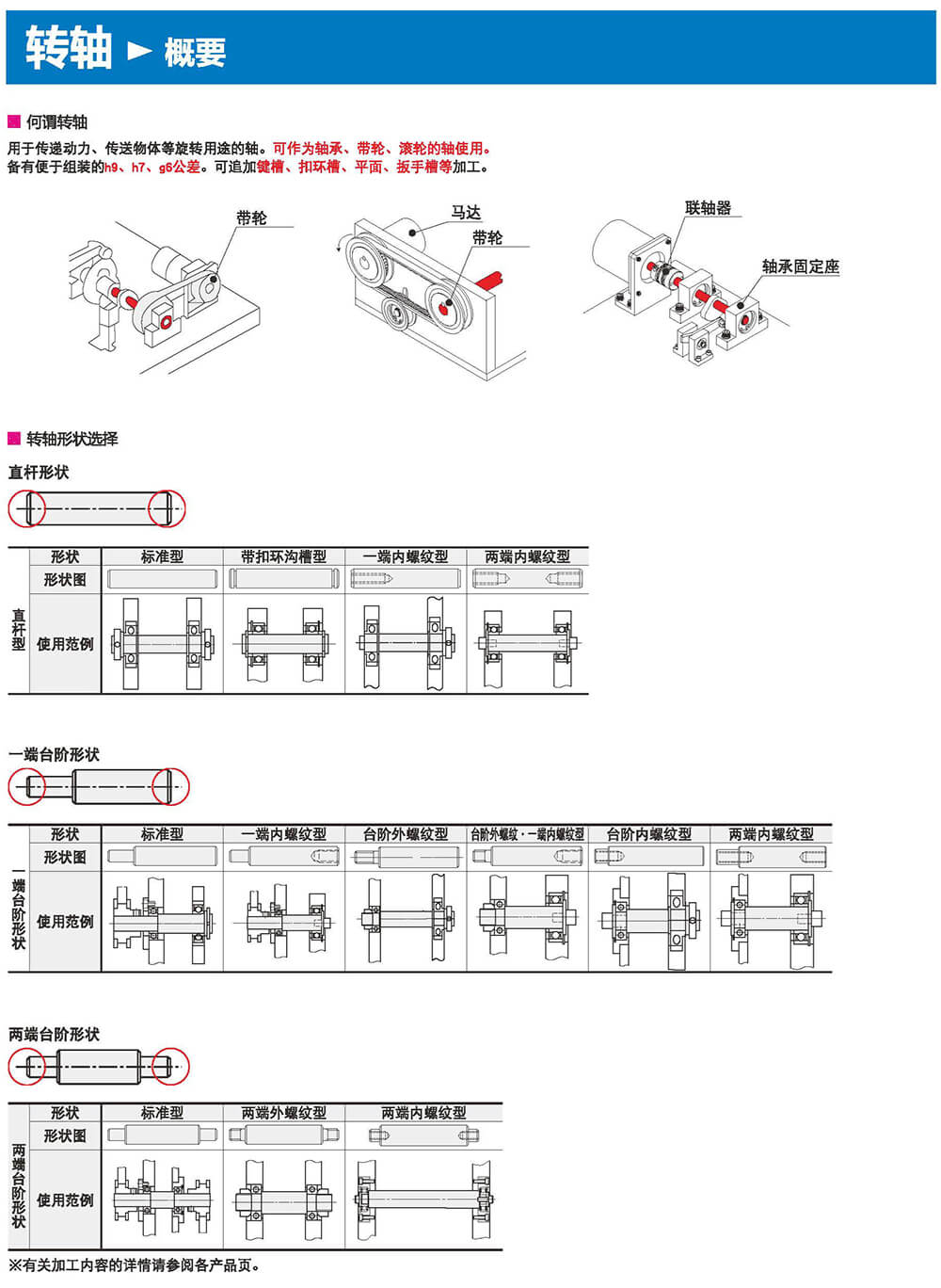 用于傳遞動力、傳送物體等旋轉(zhuǎn)用途的軸??勺鳛檩S承、帶輪、滾輪的軸使用。